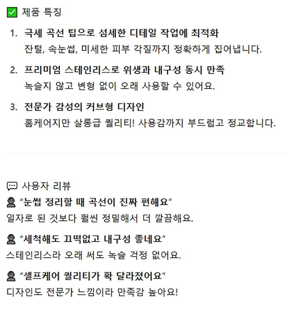 잔털 속눈썹 미세한 피부 각질까지 극정밀핀셋 커브형