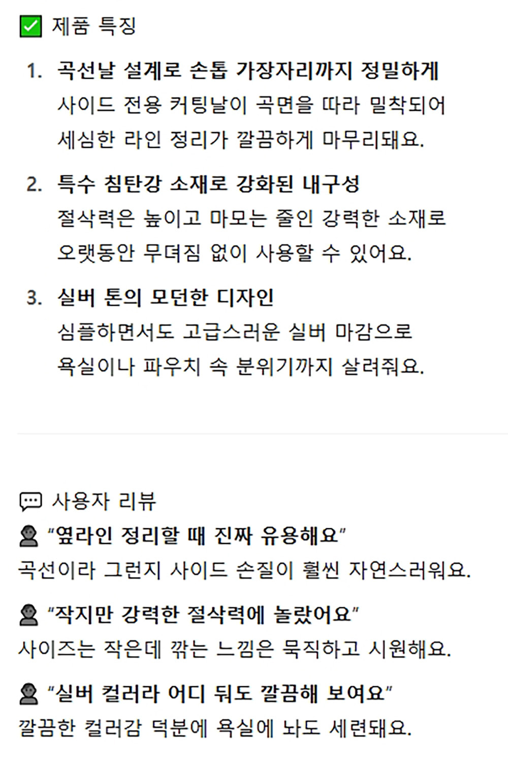 손톱 가장자리까리 정밀하게 정리 사이드깍기 소 실버