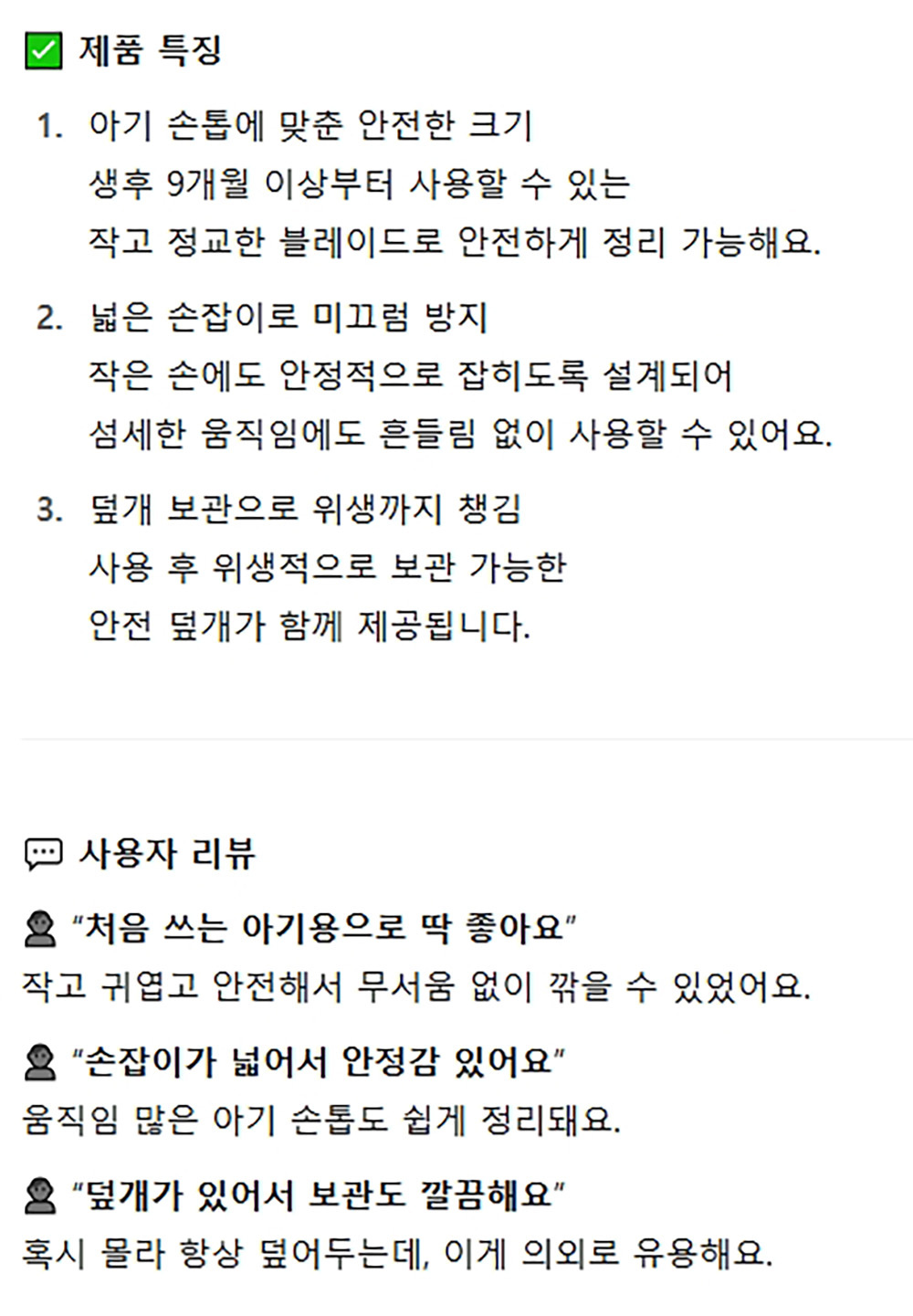 아기 손톱에 맞춘 안전한 크기 베이비전용 손톱깍이