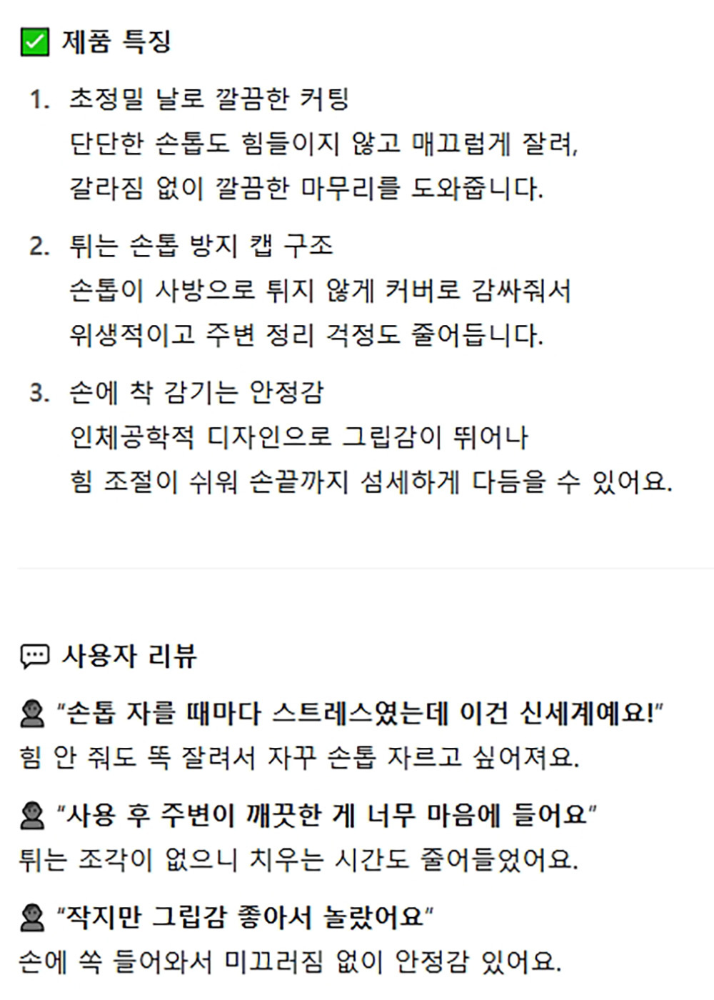 손톱 힘들이지않고 매끄럽게 커팅 튐방지 손톱깍기 중