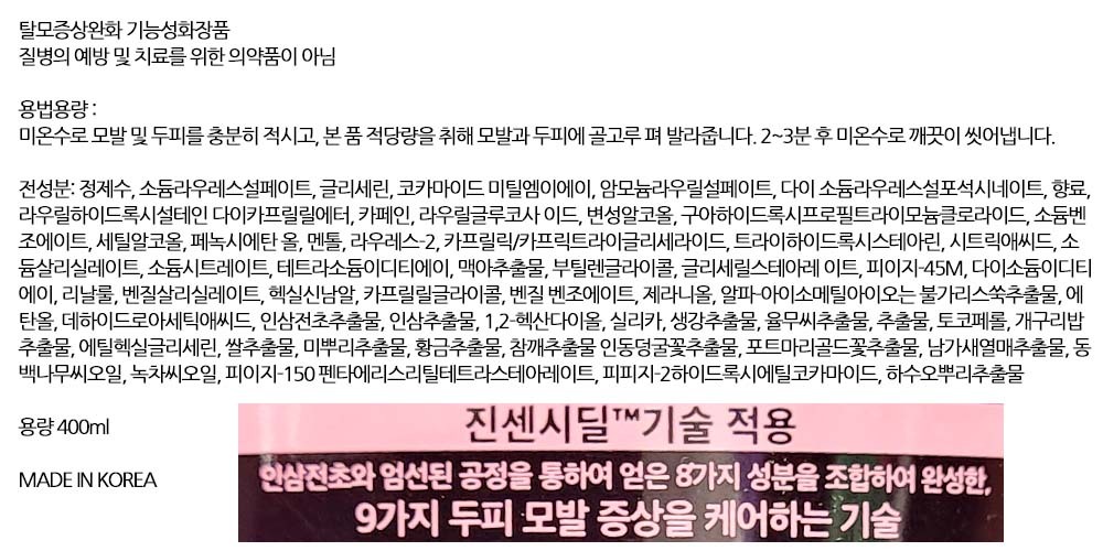 모근강화 두피영양 중건성두피 모발 헤어 샴푸 400ml