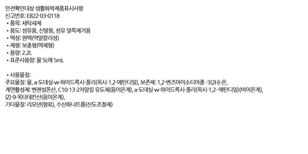섬유속 찌든때 강력제거 액체 빨래 세탁세제 1.5L 2개