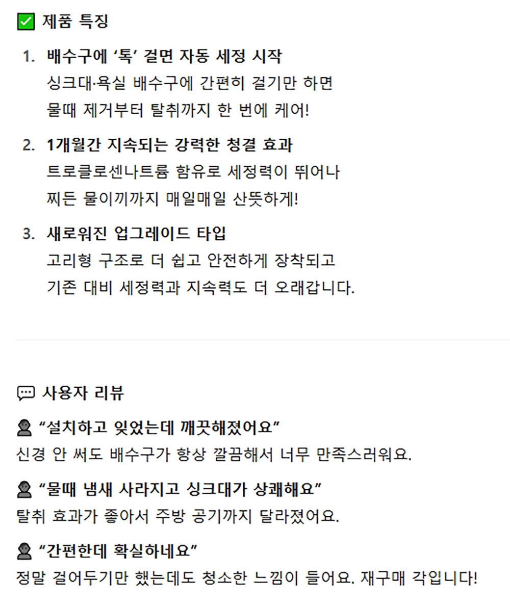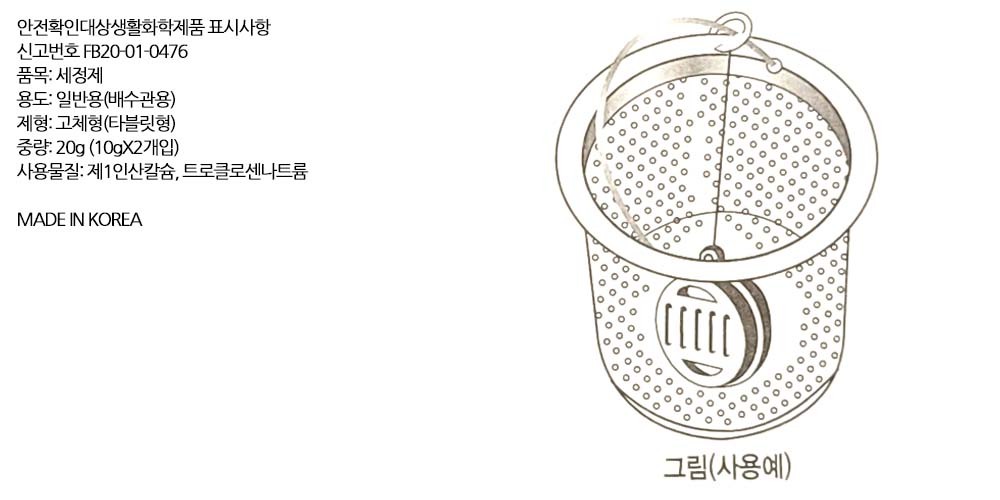 싱크대 붙어있는 물때 주방 배수구 세정제 10g 2입