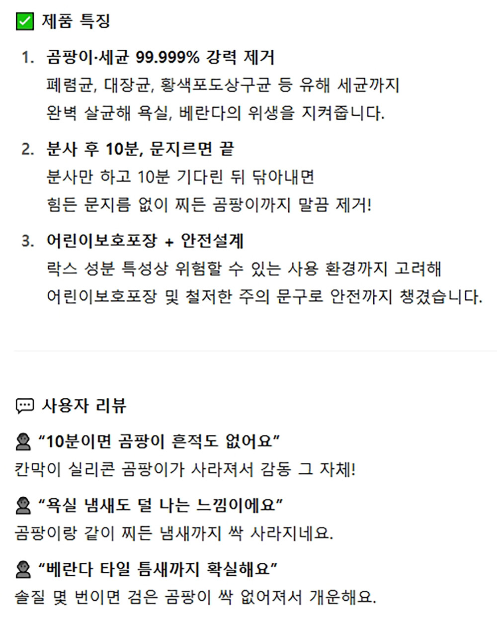 분사 후 10분 문지르면 끝 찌든 곰팡이 제거제 750ml