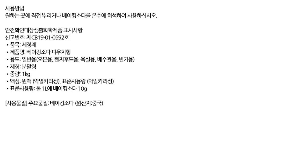 잘 지워지지 않는 기름때 찌든때 제거 베이킹소다 1kg