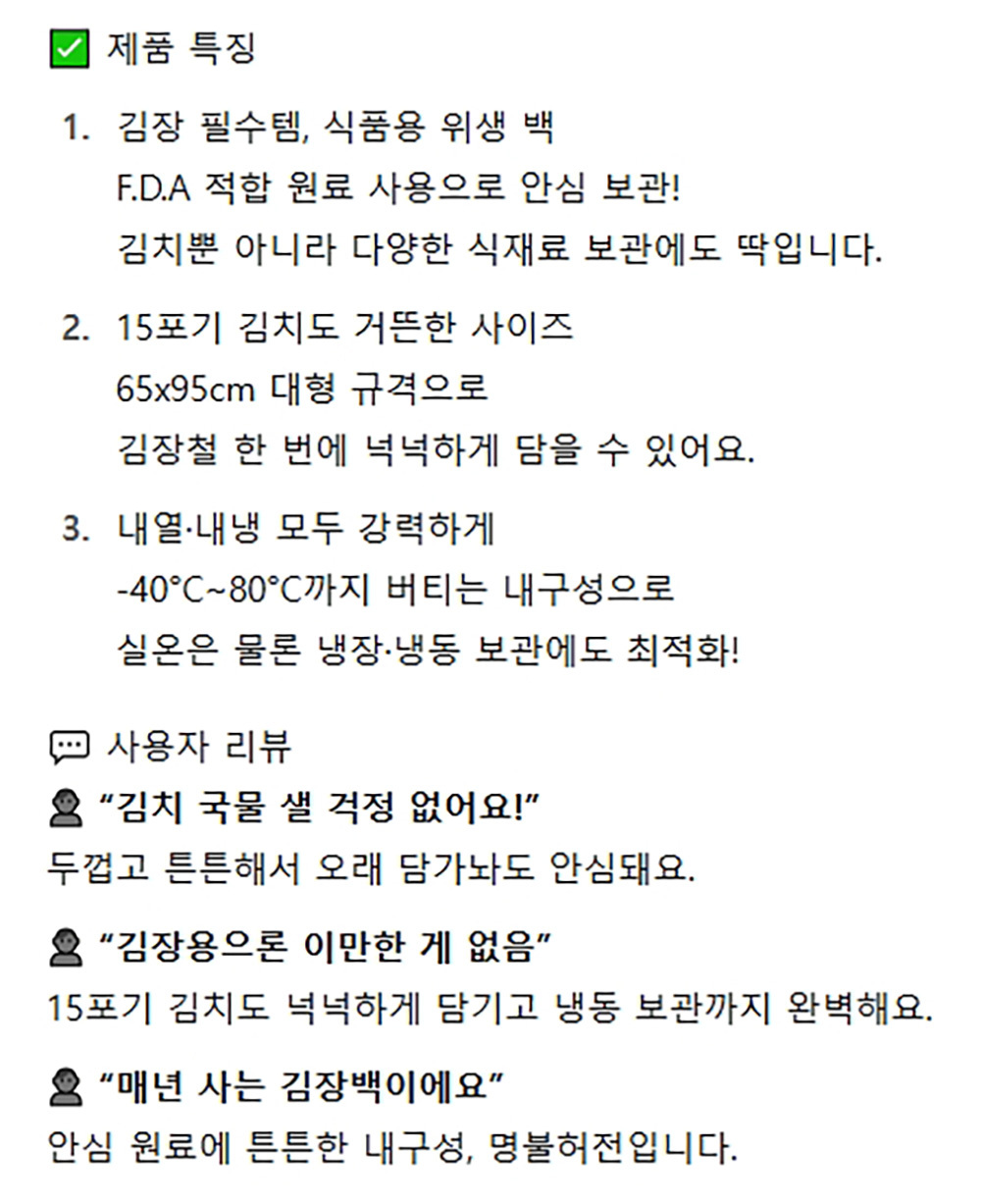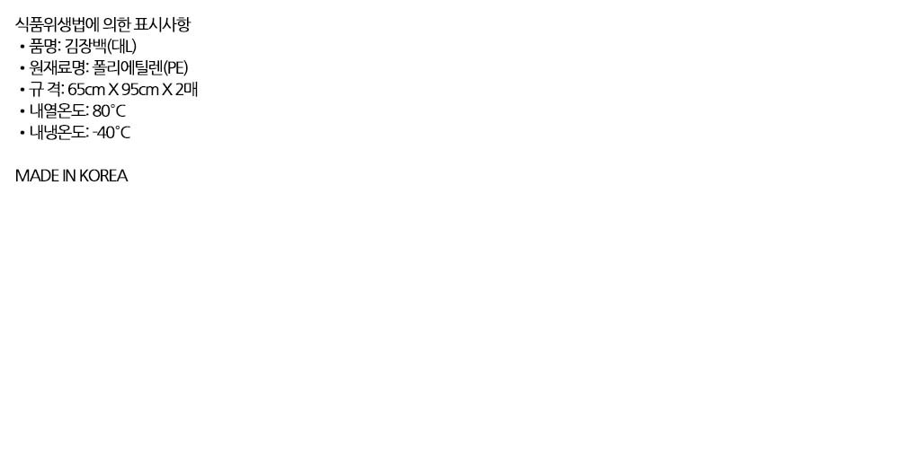 안심보관 가능한 위생 적합원료 김장백 대형 2매 10봉