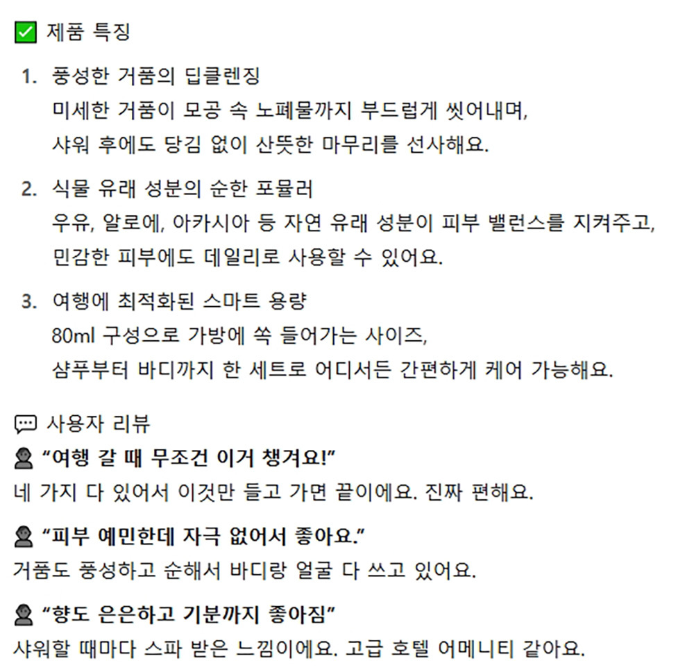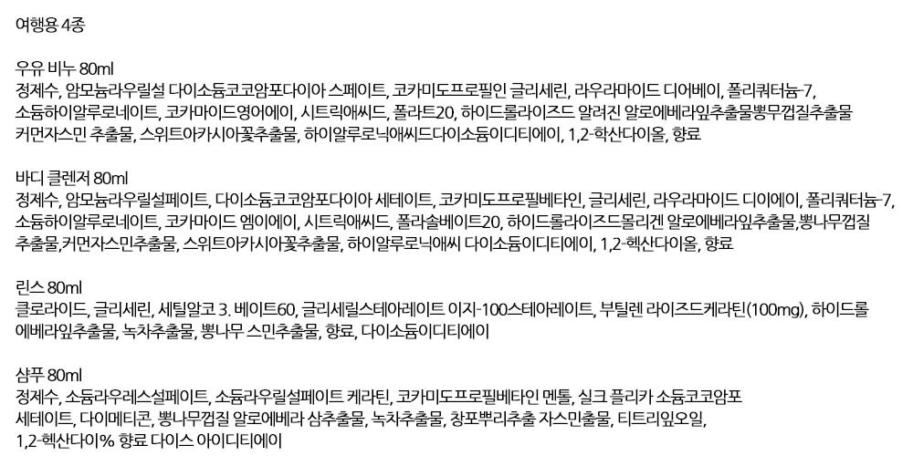 샴푸 린스 바디클렌져 우유비누 간편 여행용 4종세트