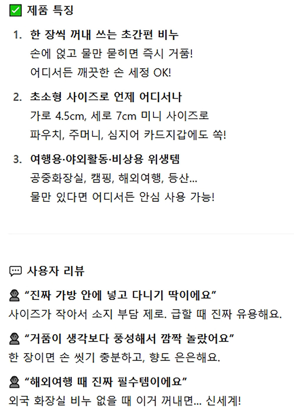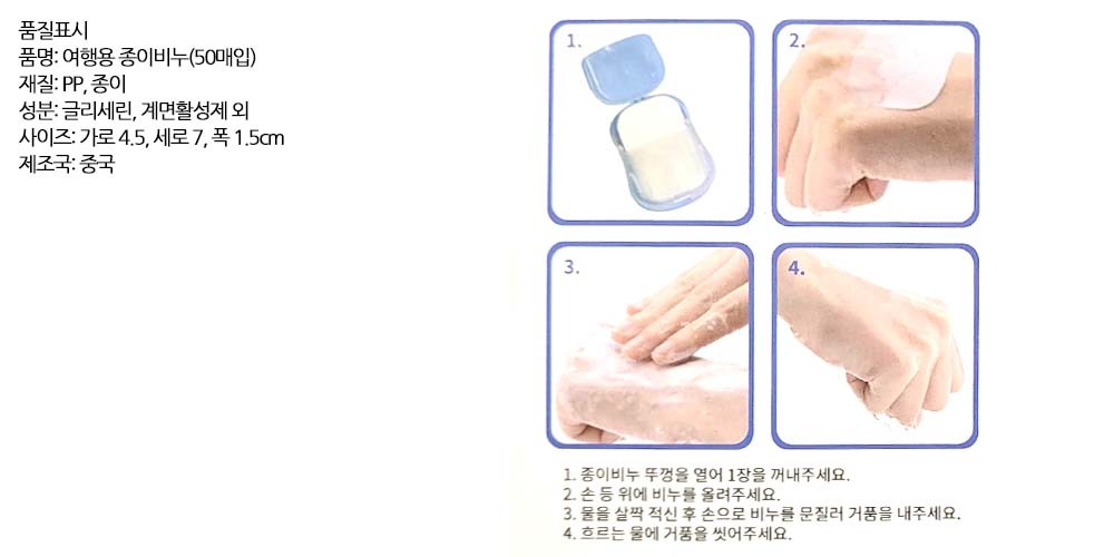 일회용 휴대용 여행용 한장씩 뽑아쓰는 종이비누 50매