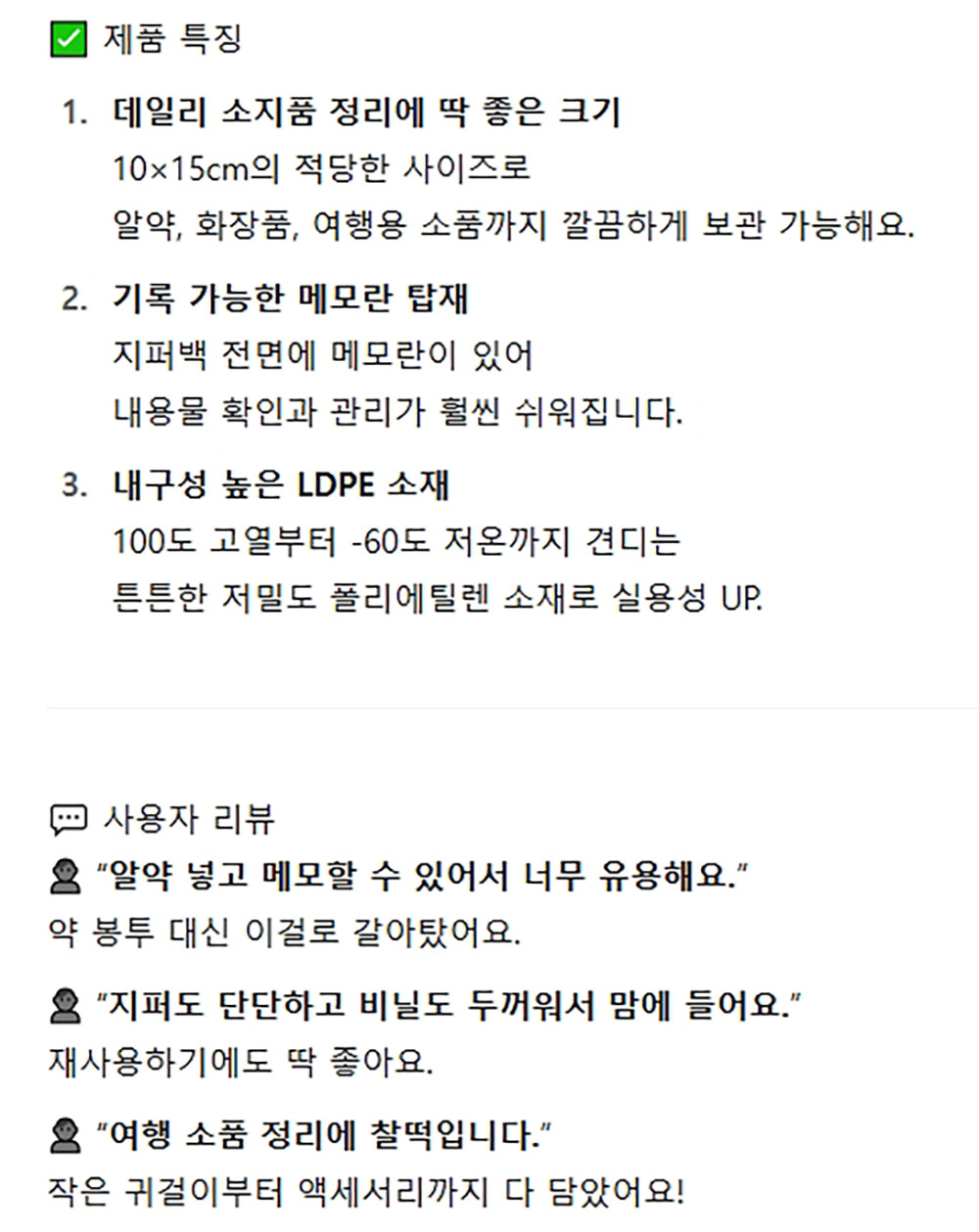 메모란 있어 편리하게 메모할수 있는 지퍼백 18매 5봉