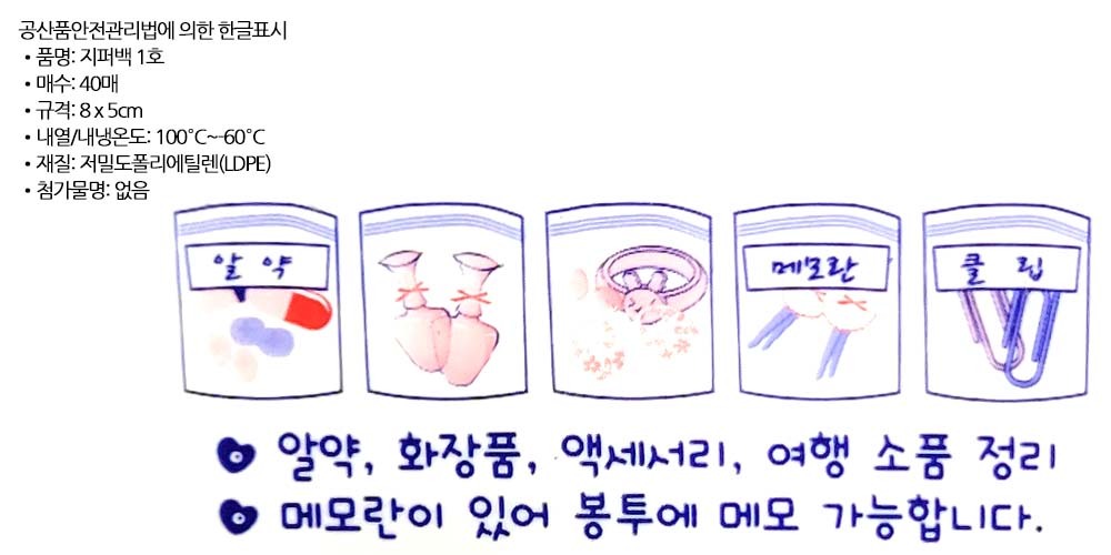 메모란 있어 편리하게 메모할수 있는 지퍼백 40매 5봉