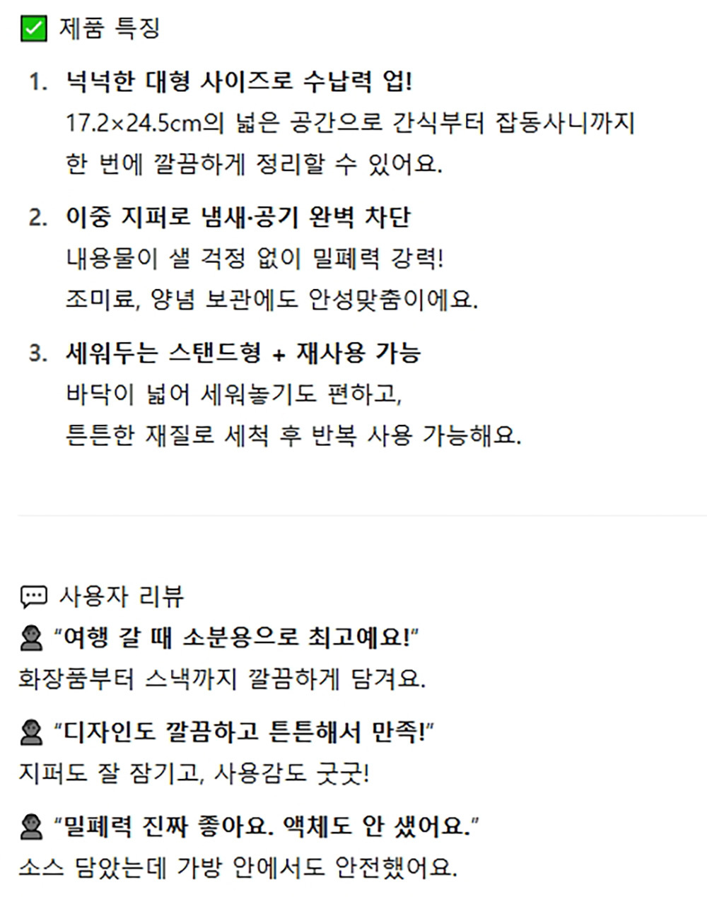 바닥부분 스탠드 형식 보관 편리 지퍼백 대 3매 10봉