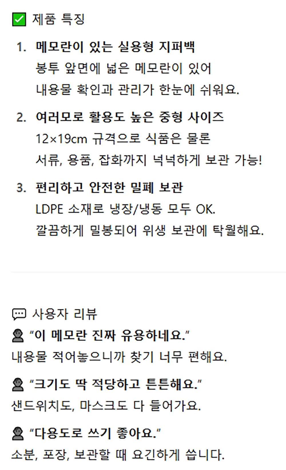 메모란 있어 편리하게 메모할수 있는 지퍼백 14매 5봉