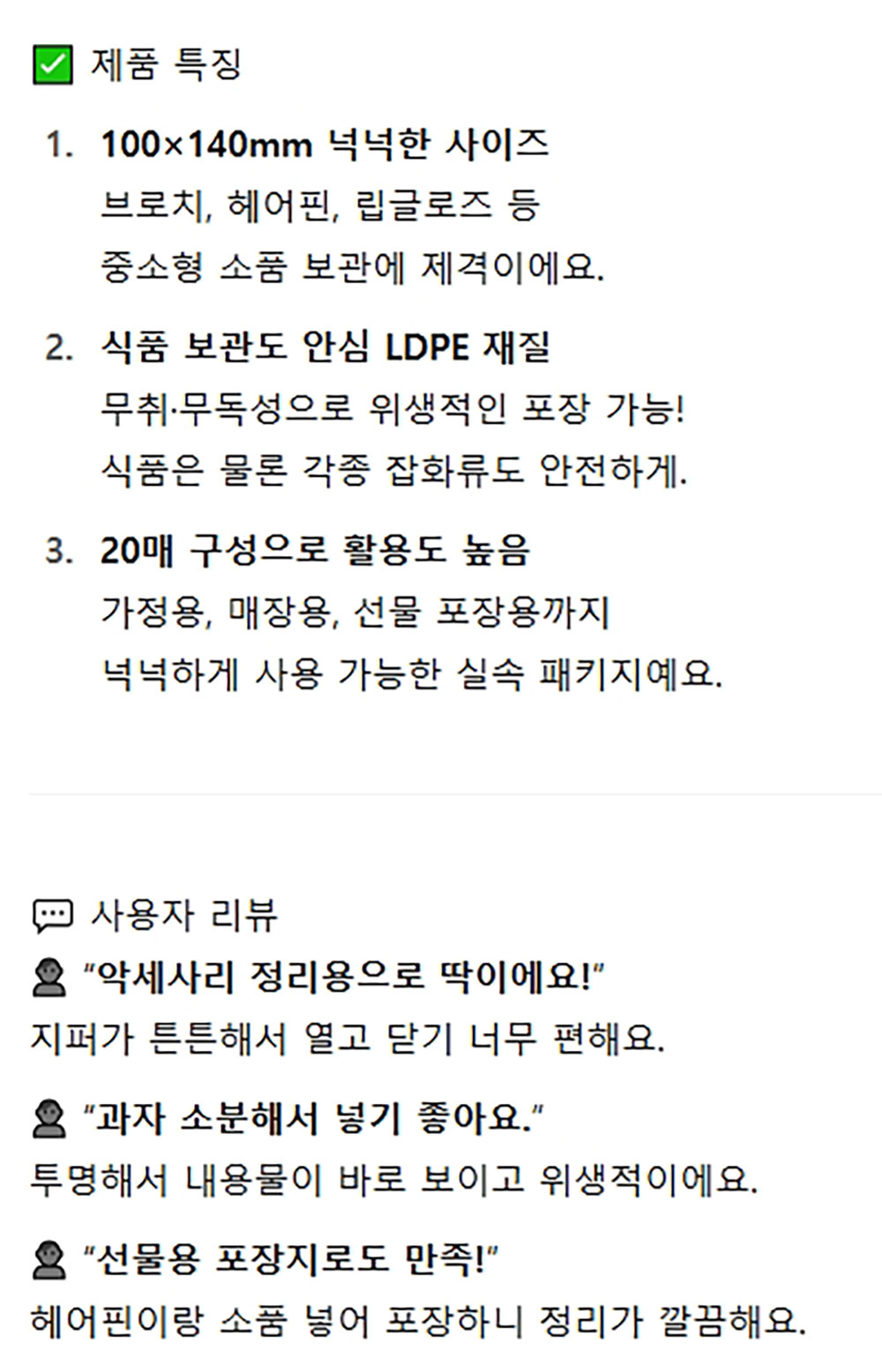 브로치 헤어핀 다양한 소품 보관 지퍼백 20매 10봉