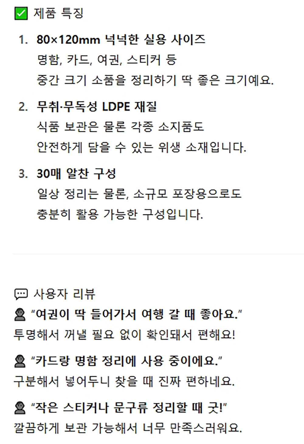 안전하게 담을 수 있는 위생소재 지퍼백 30매 10봉