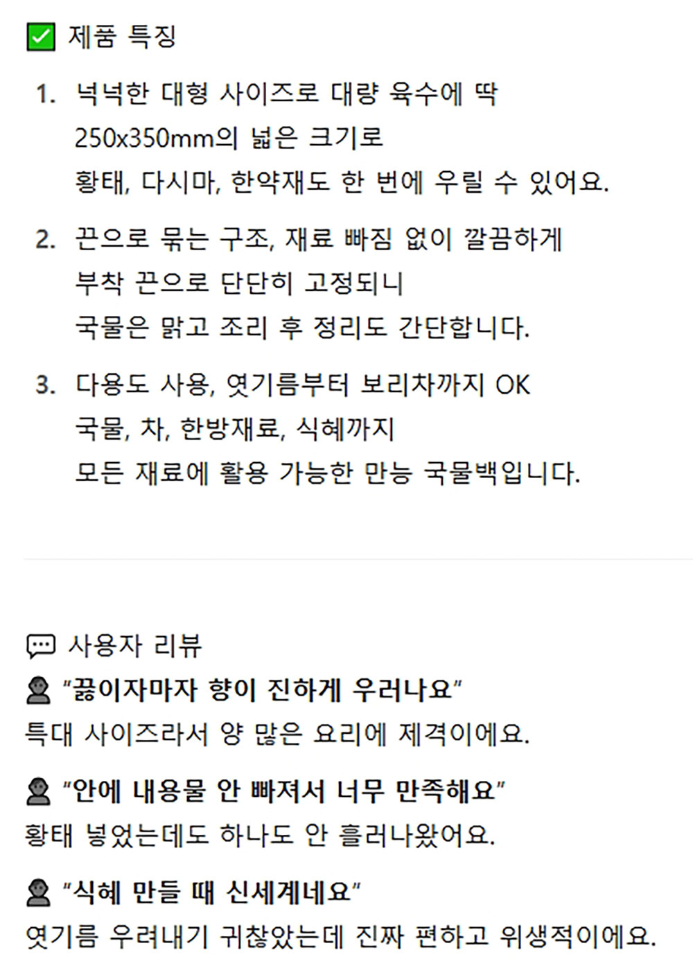 봉지 그대로 국물 우려낼 때 편리 국물백 대 3매 5봉