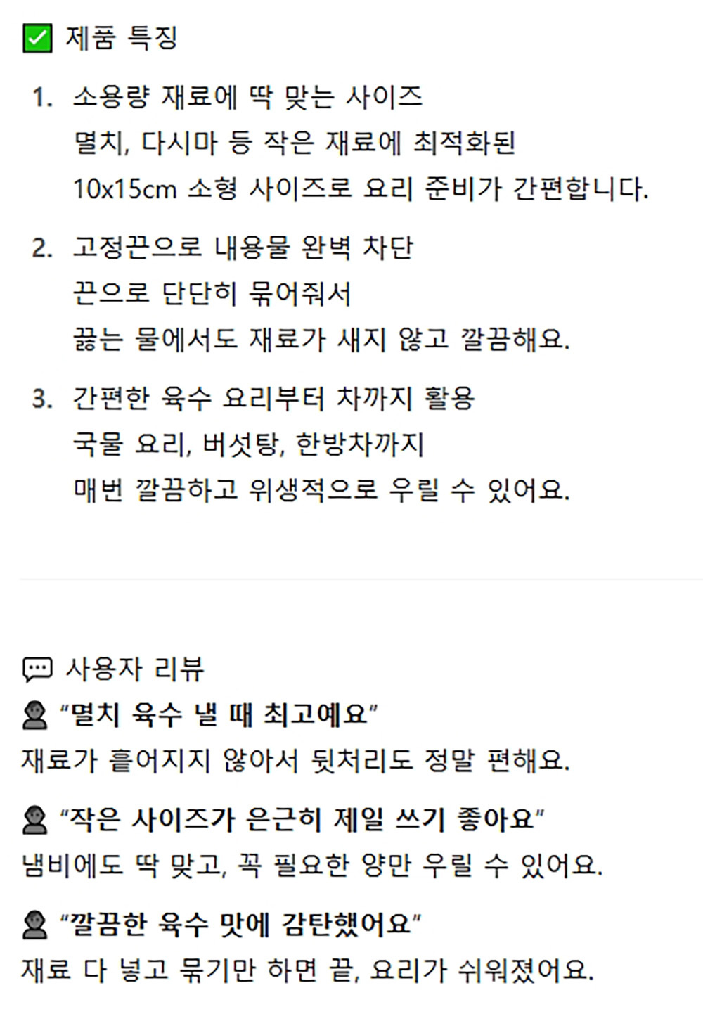 끈으로 묶어 재료 빠짐없이 깔끔 다시백 중 6매 5봉