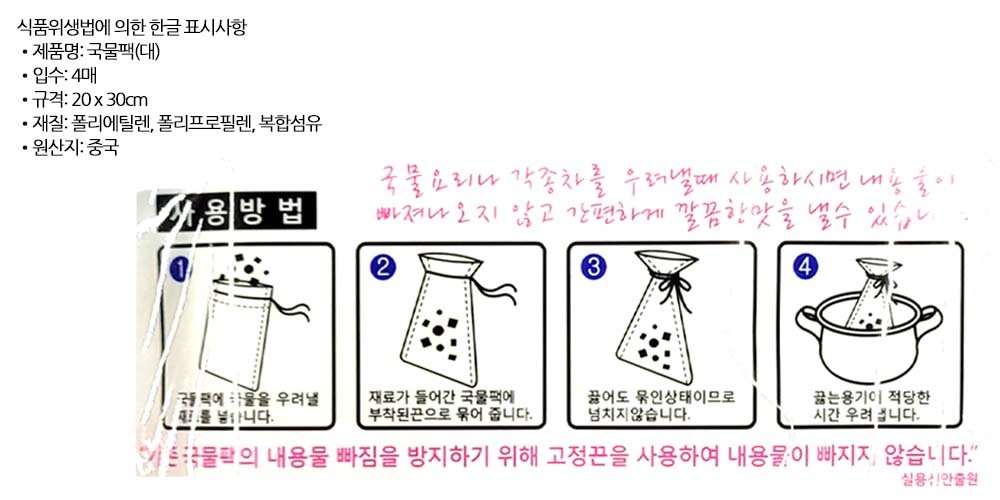 부피 큰재료를 우려낼 때 깔끔하게 국물팩 대 4매 5봉