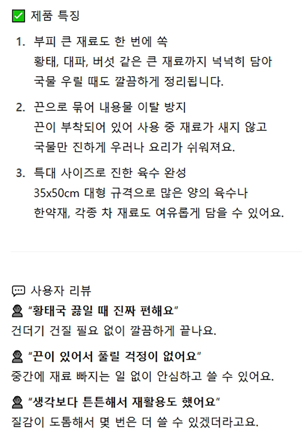 부피 큰재료 우려낼 때 깔끔하게 국물팩 특대 2매 5봉