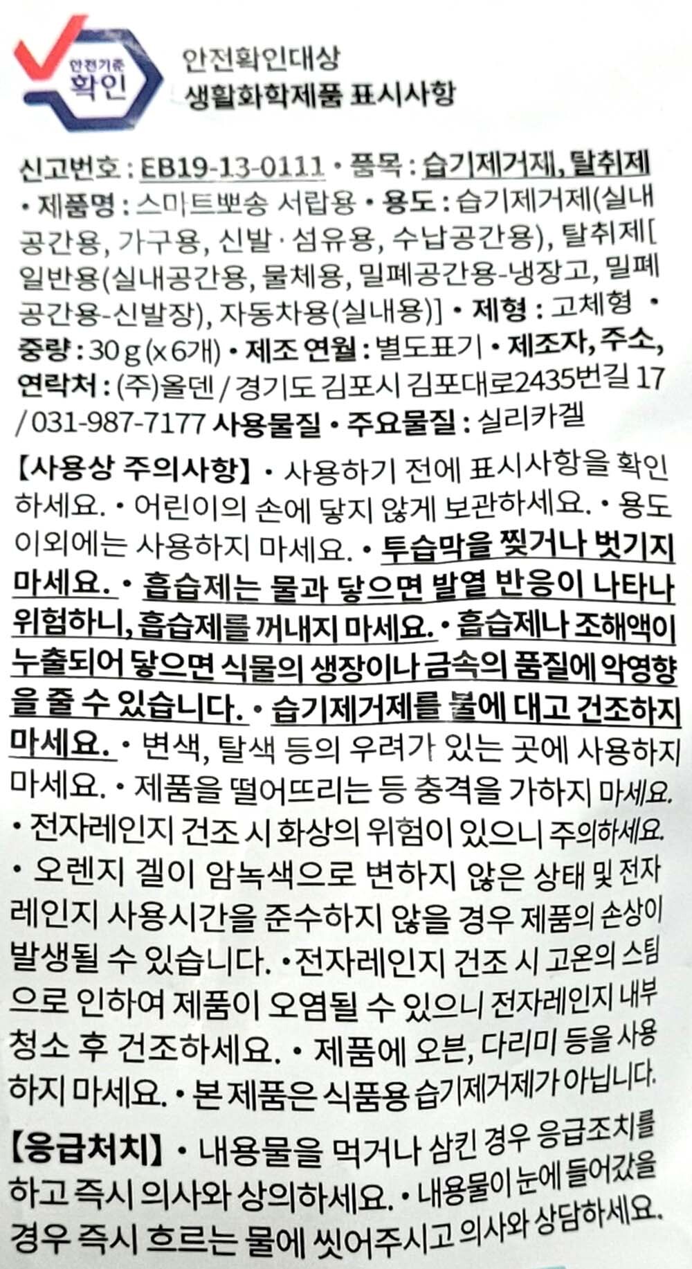 습기 냄새를 한번에 해결하는 서랍용 제습제 30g 6입