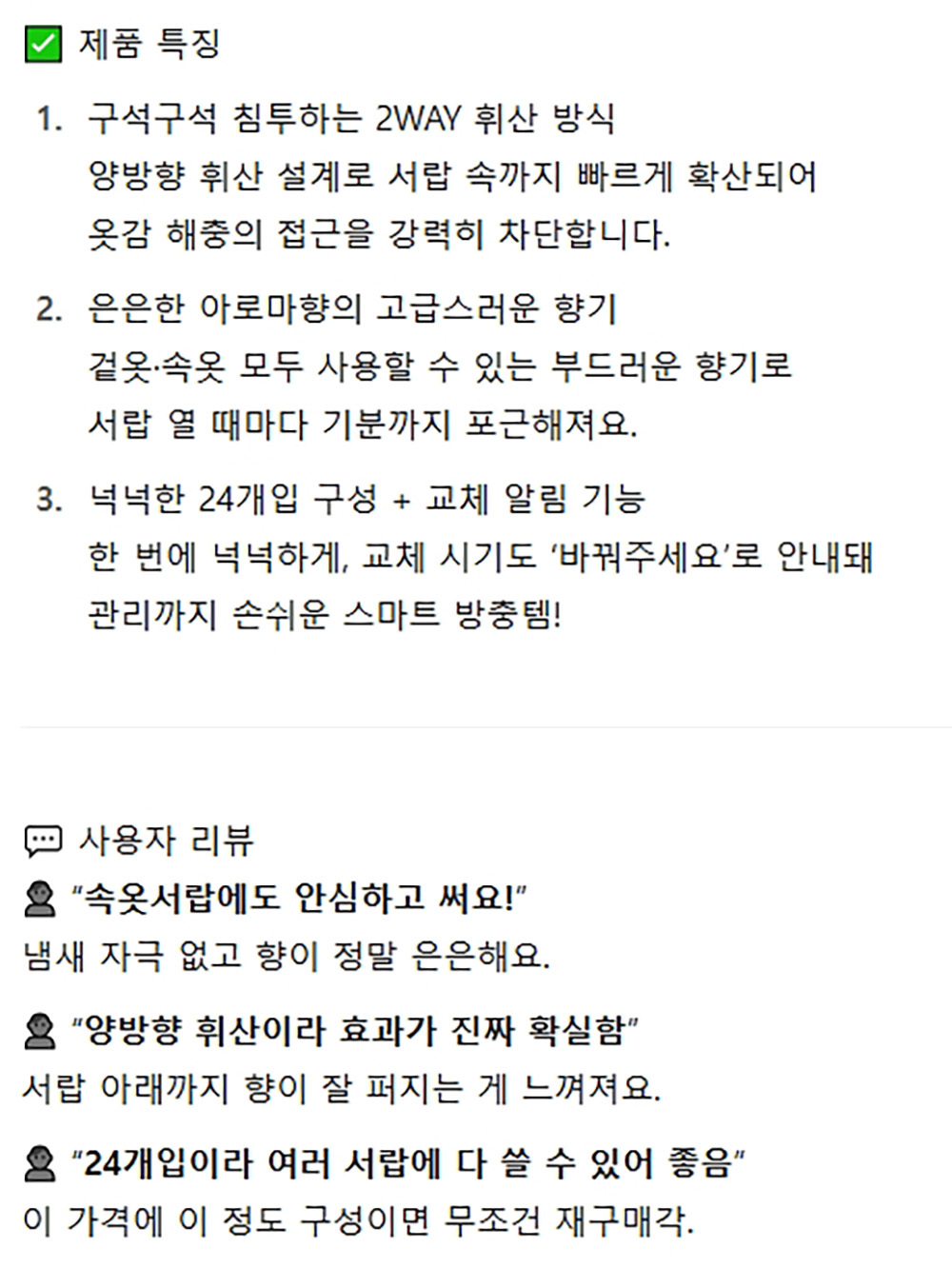 은은한 아로마향 강력한 좀벌레 방충 서랍장용 12g