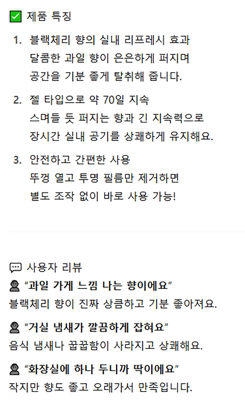 젤타입으로 70일 지속 실내용 탈취제 블랙체리향 260g