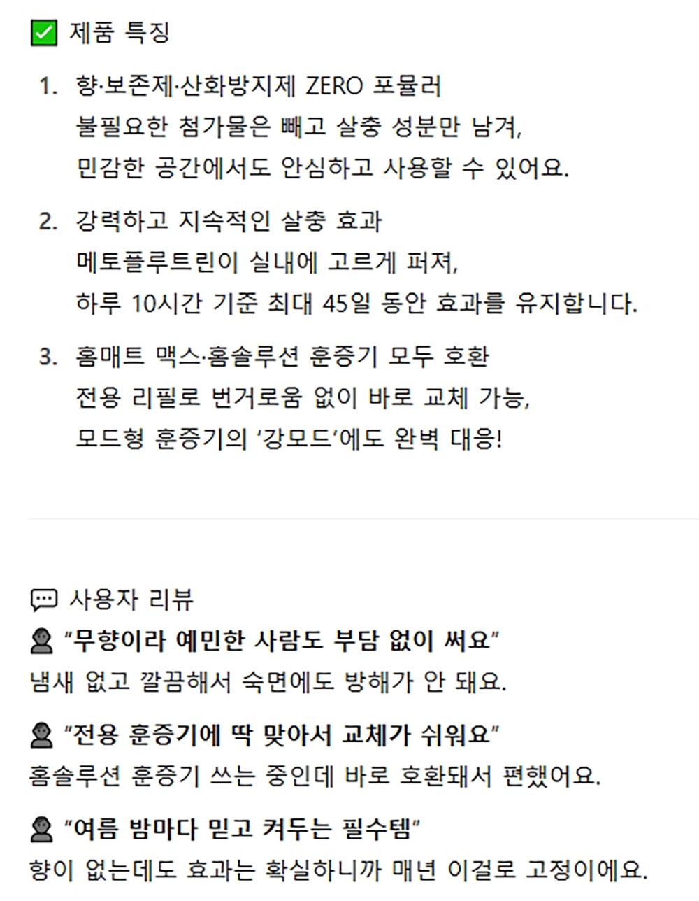 향 보존제 산화방지제 제로 액체 전자모기향 리필 1입