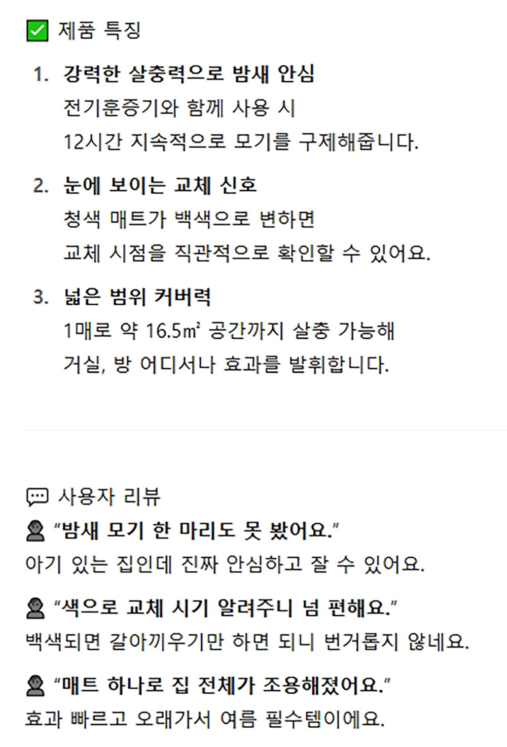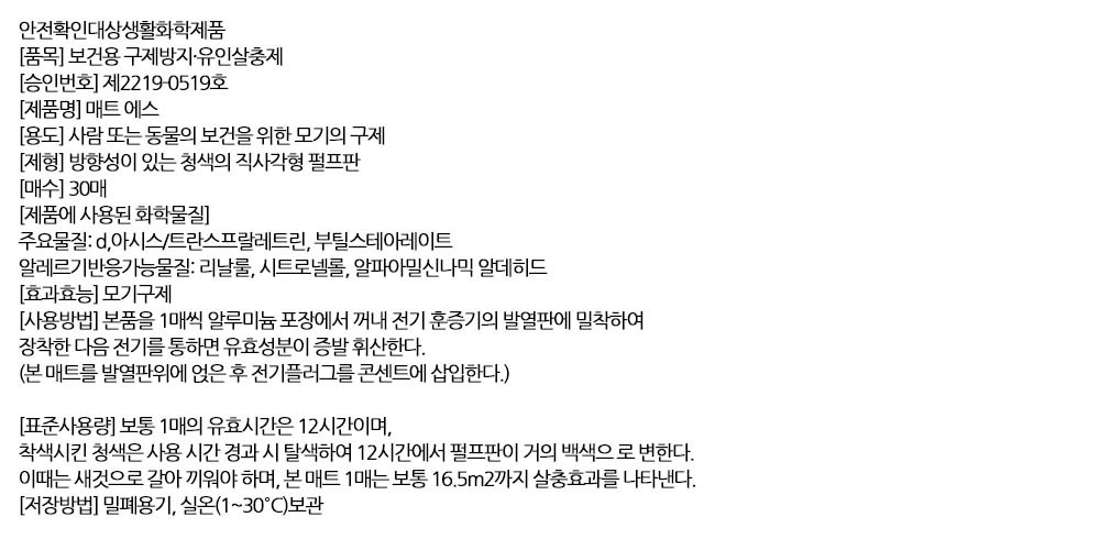 강력한 살충력 밤새 안심 12시간 지속 모기 매트 30입