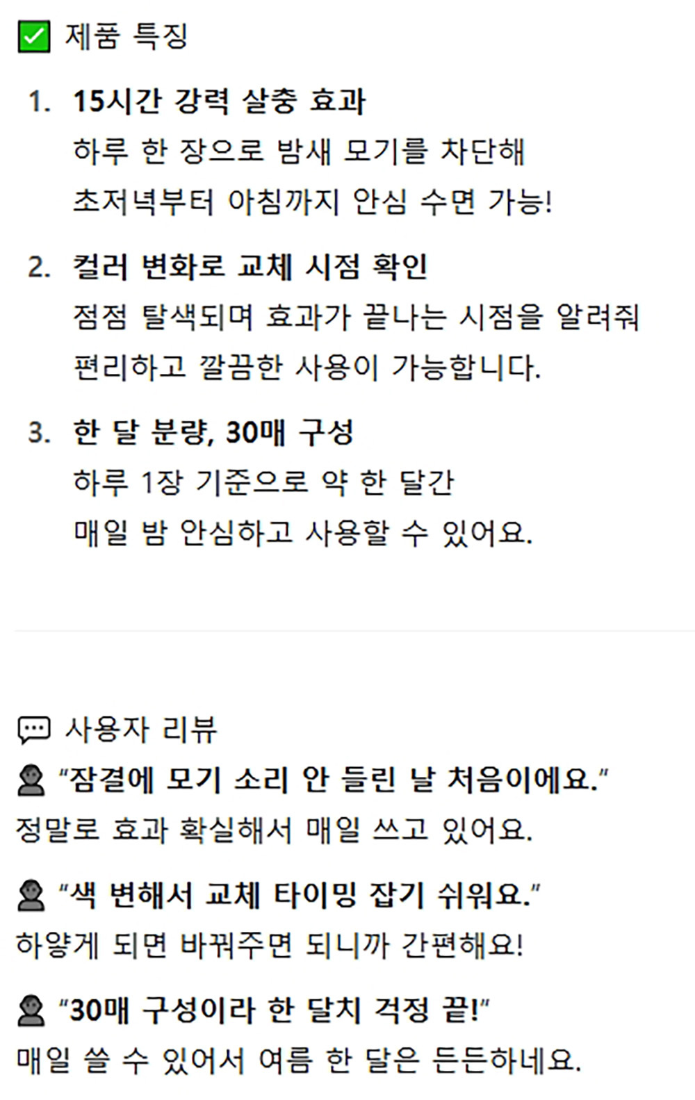 강력 효과 15시간 밤샘보호 전자훈증기 모기매트 30매