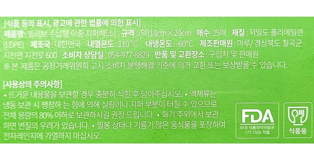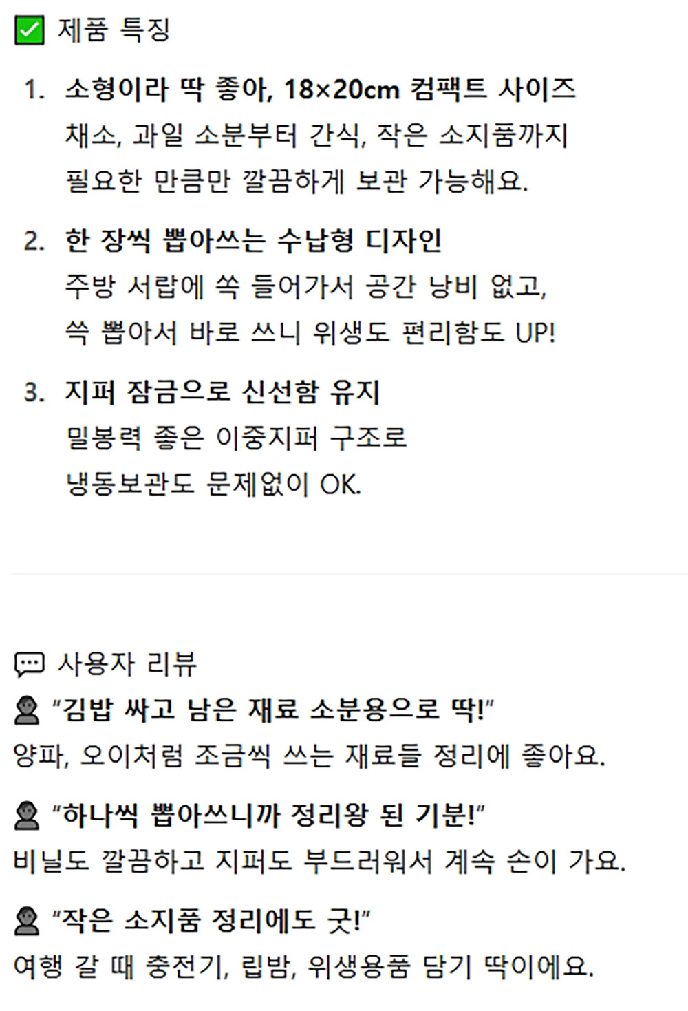 쏙 뽑아쓰는 간편하게 한장씩 이중지퍼백 소형 25매