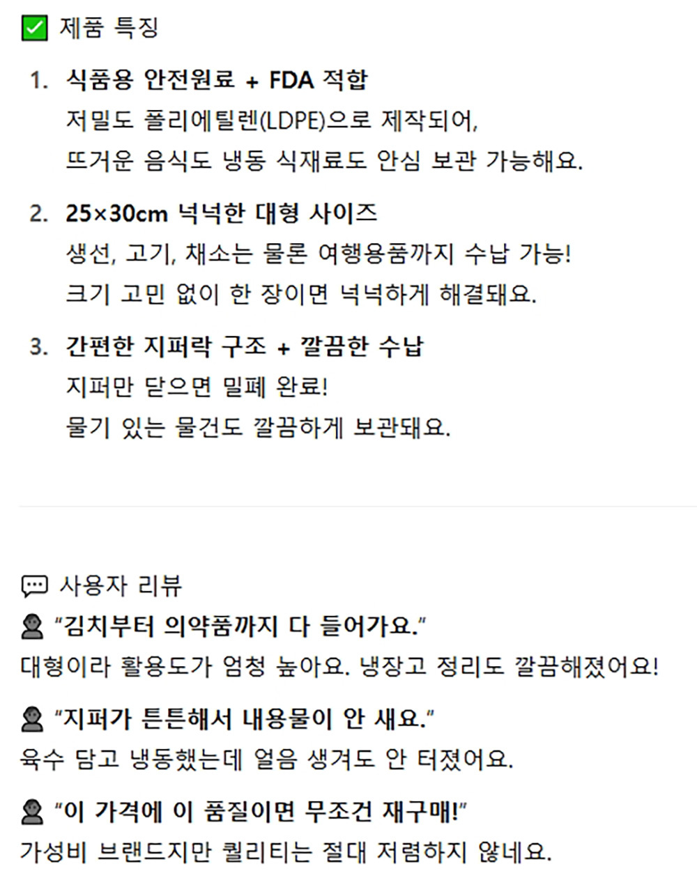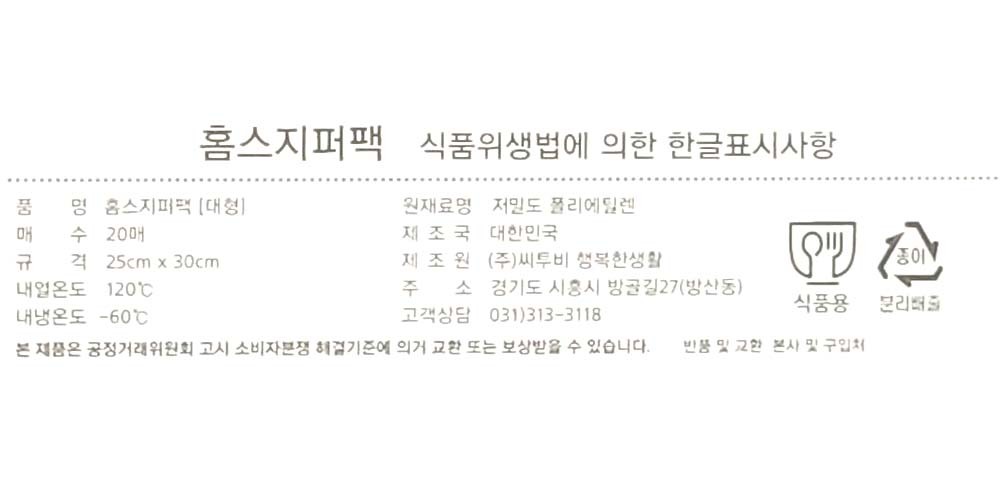 어디서나 간편하게 안전원료 식품용 지퍼팩 20매 대형