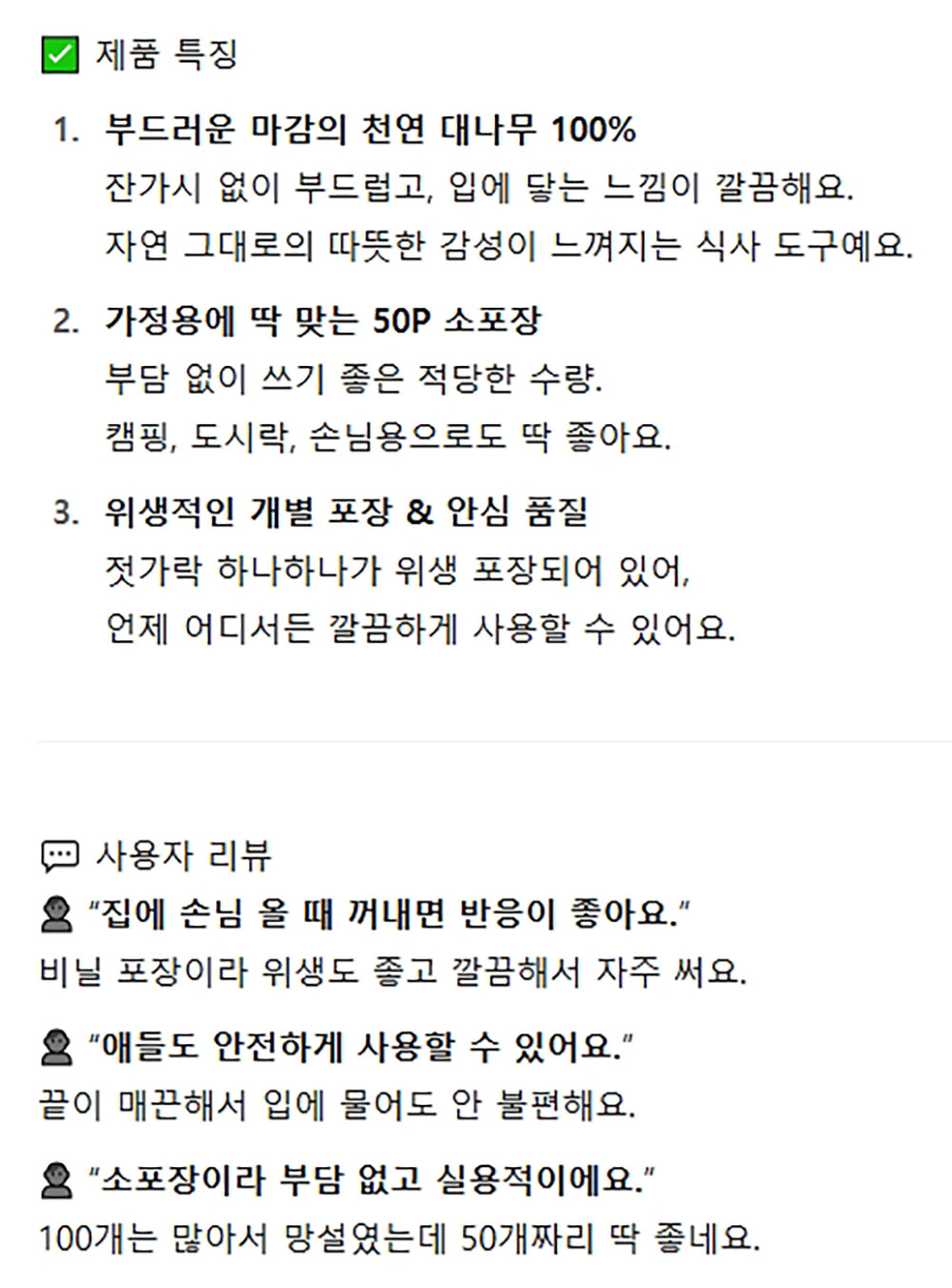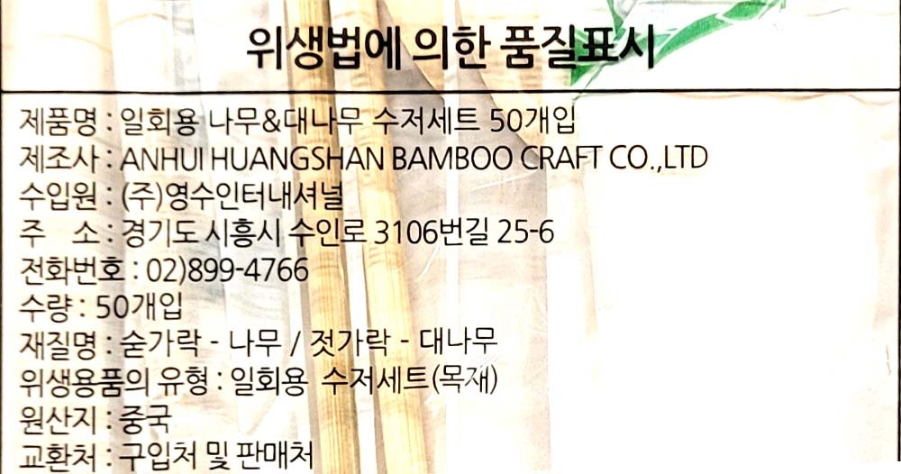 캠핑 도시락 개별포장 일회용 대나무 수저세트 50입