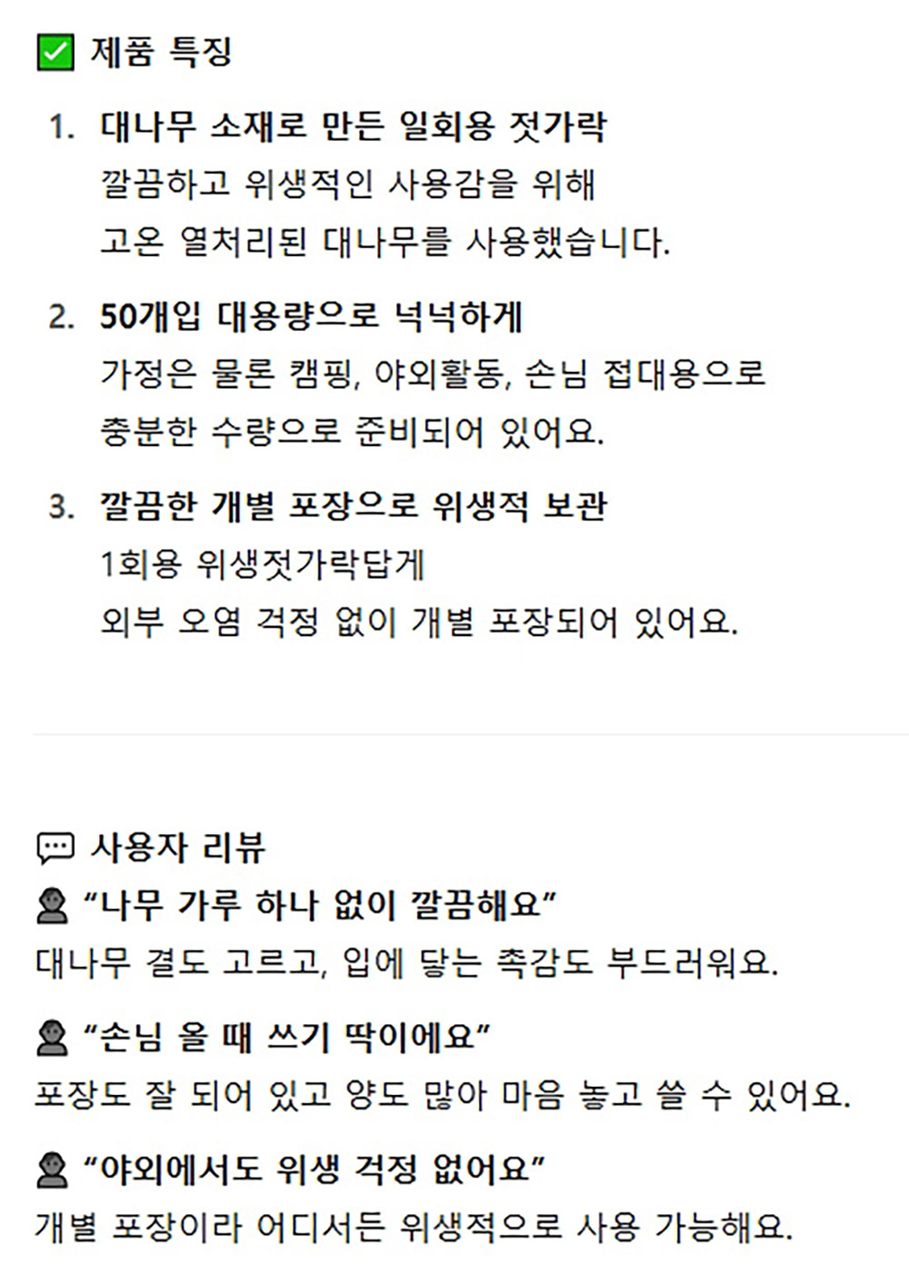 대나무 소재로 만든 개별포장 캠핑 행사 젓가락 50입