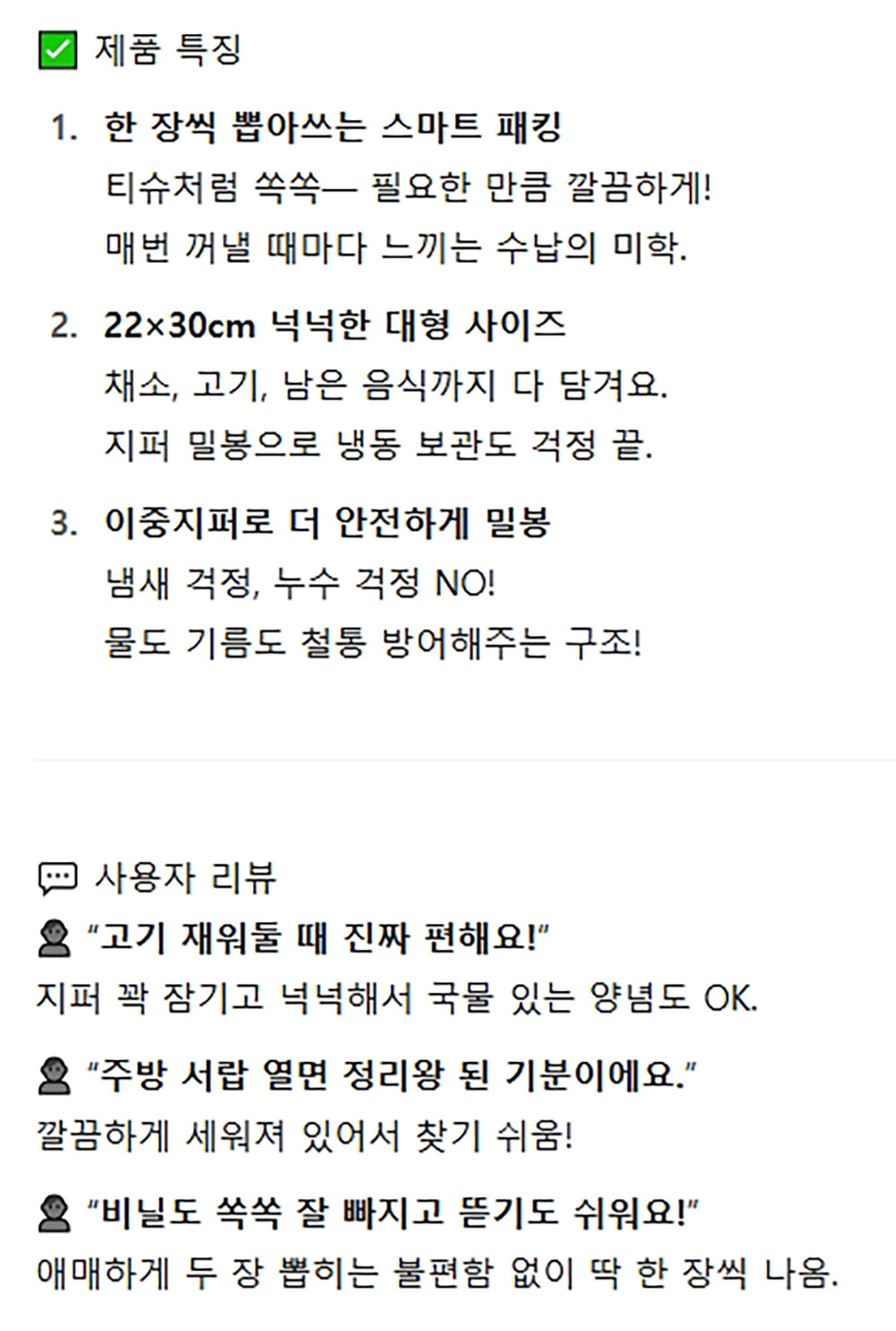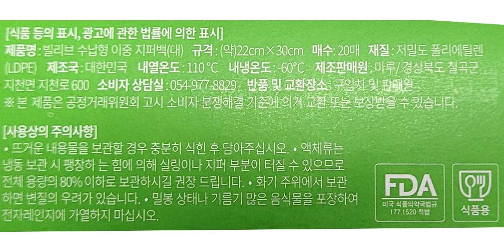 쏙 뽑아쓰는 간편하게 한장씩 이중지퍼백 대형 20매