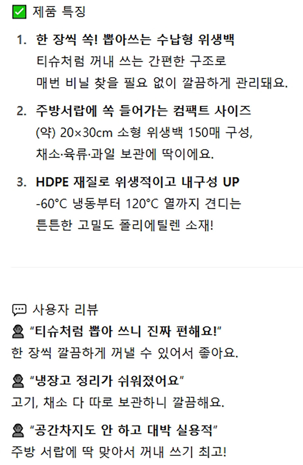 쏙 뽑아쓰는 간편 한장씩 공간활용 위생백 소형 150매