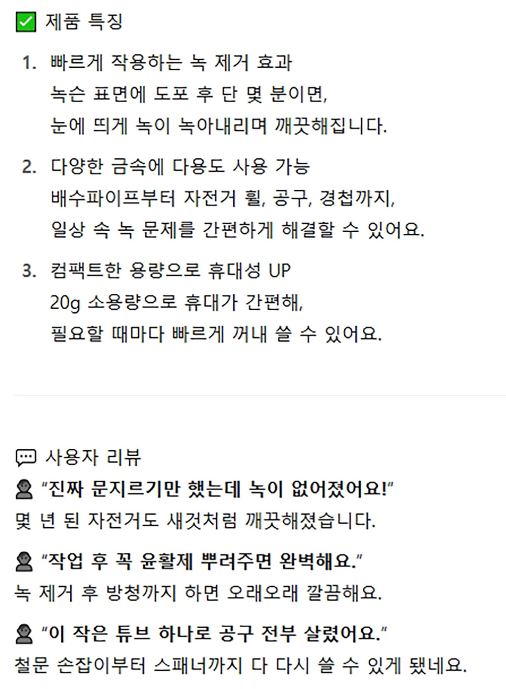 손수레 철문 녹슨공구 스텐리스 빠르게 녹 제거제 20g