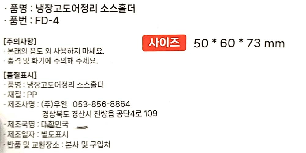 튜브형 소스 깔끔하게 정리하세요 냉장고정리 홀더 4P
