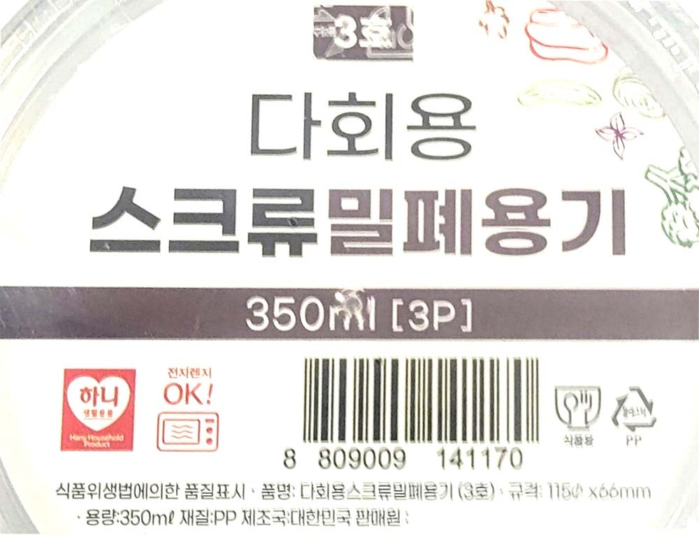 내용물 신선도 오래유지 스크류 밀폐용기 350ml 3입