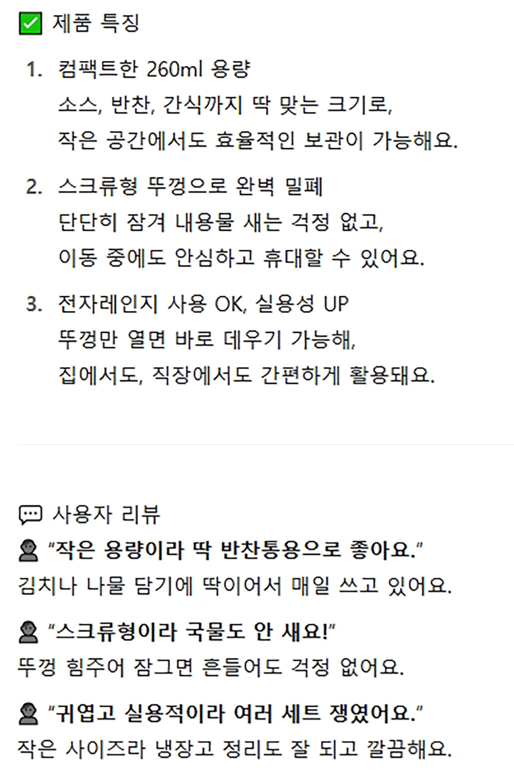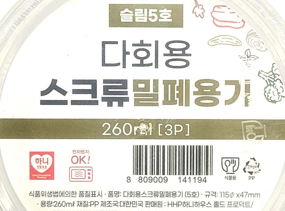 소스 반찬 간식 보관 스크류 밀폐용기 슬림 260ml 3입