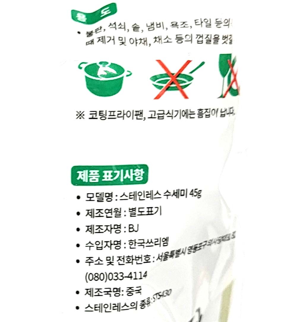 강력한 세척력 불판 석쇠 찌든때 청소 철수세미 45g
