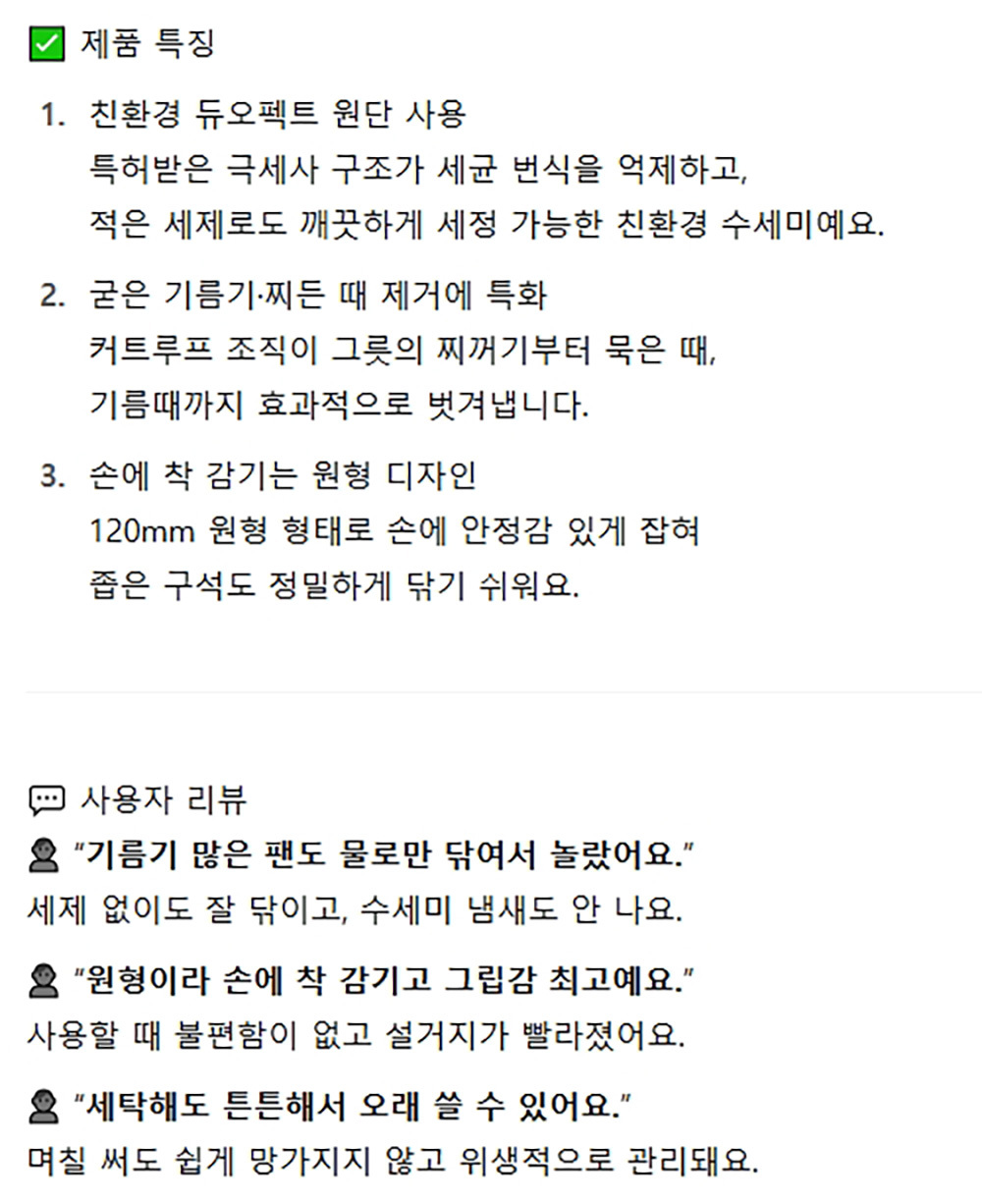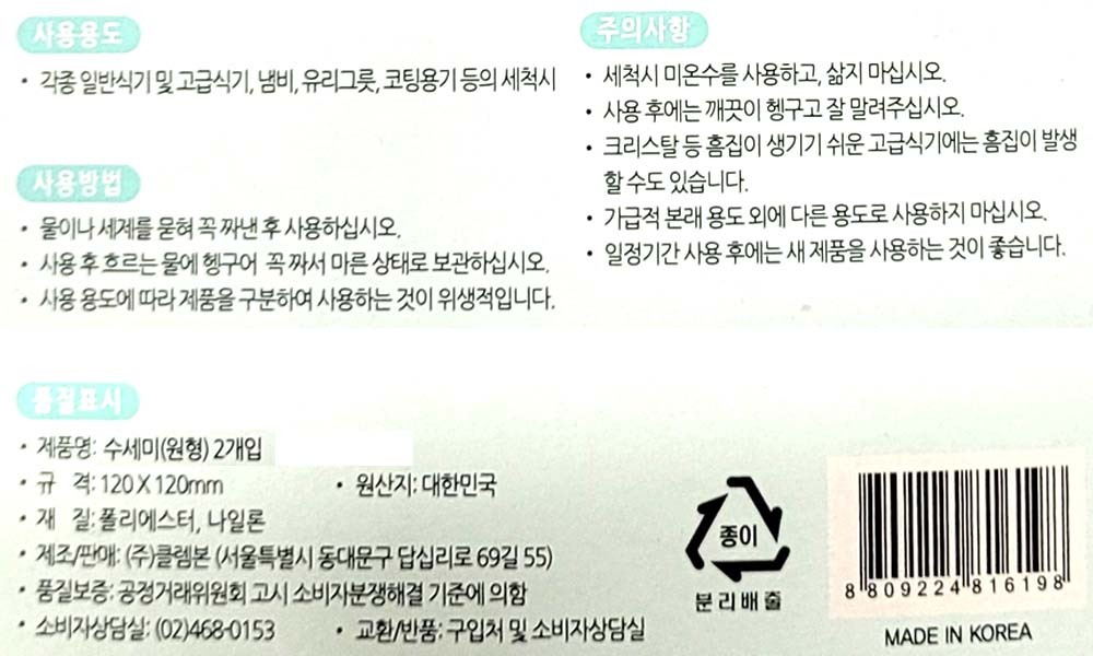 그릇 음식찌꺼기 주방 묵은 때 말끔히제거 수세미 2입