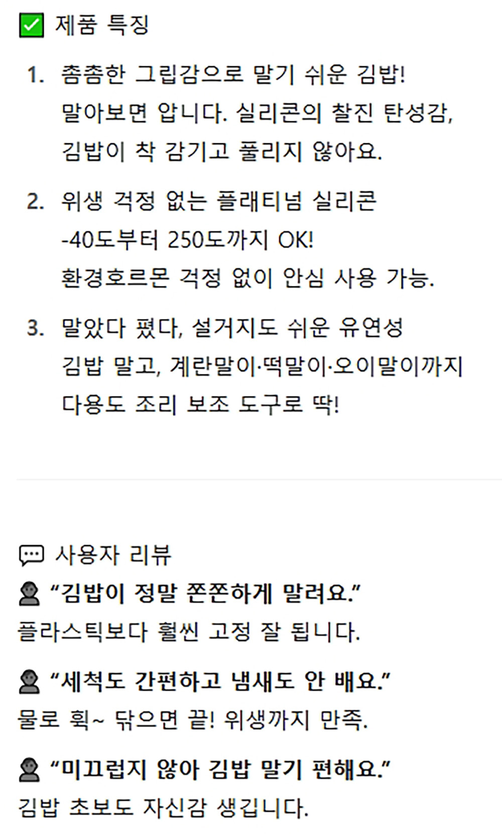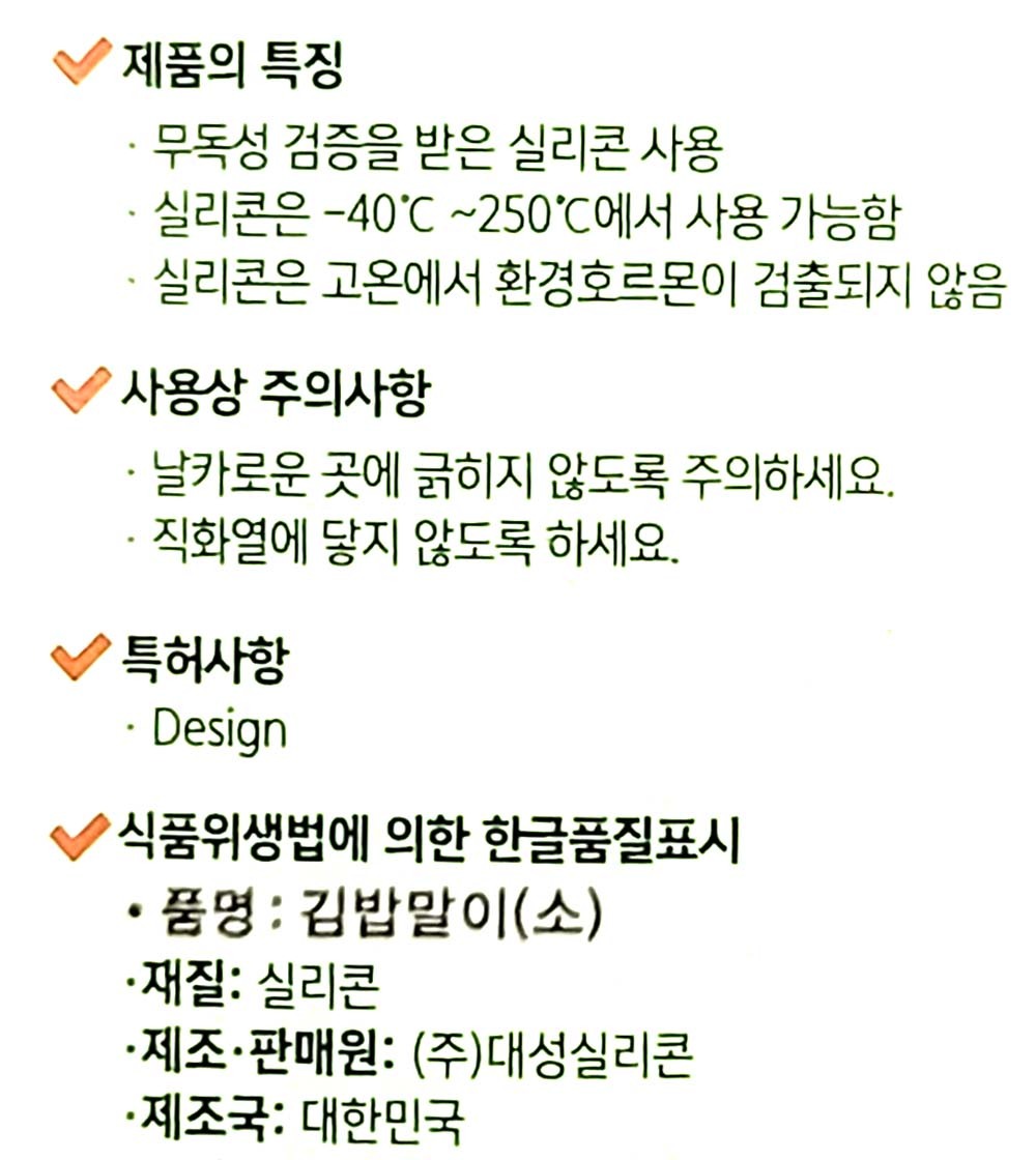 촘촘한 그립감으로 말기 쉬운 실리콘 김밥말이 그린