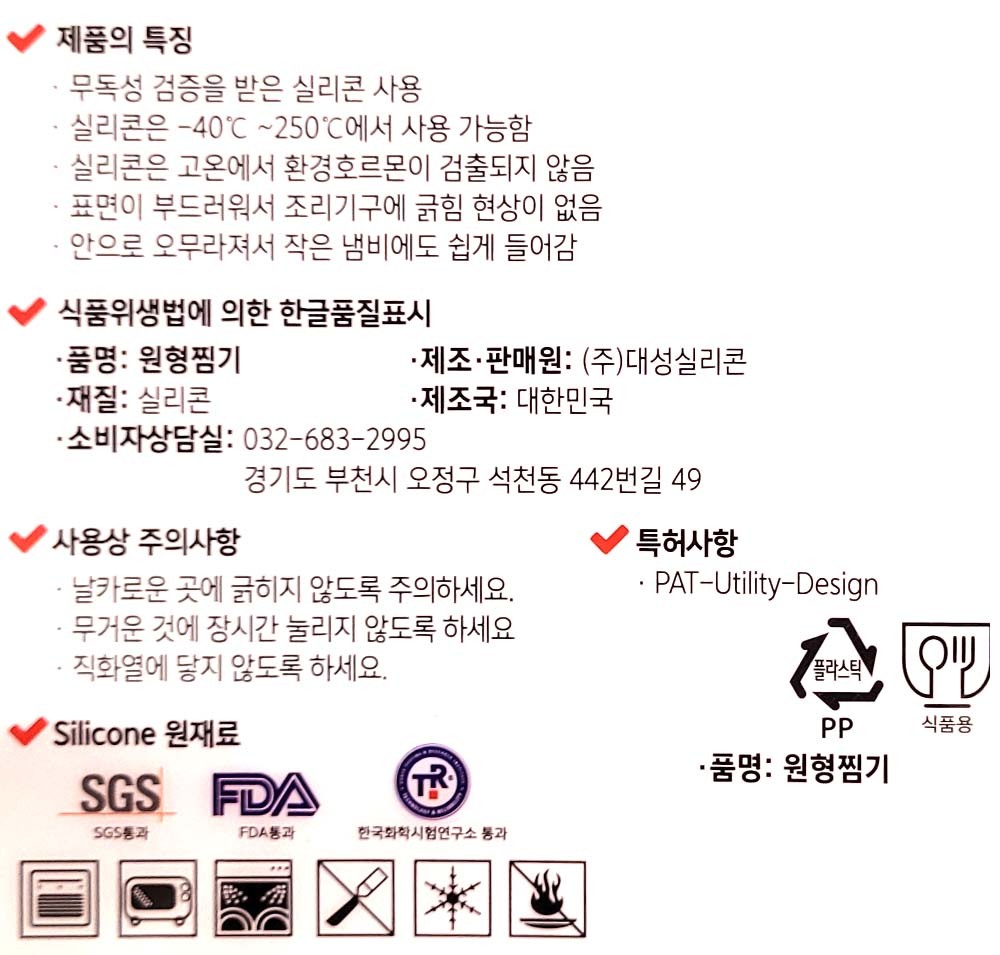 고온에서 안전 보관 세척 간편 실리콘 원형찜기 레드