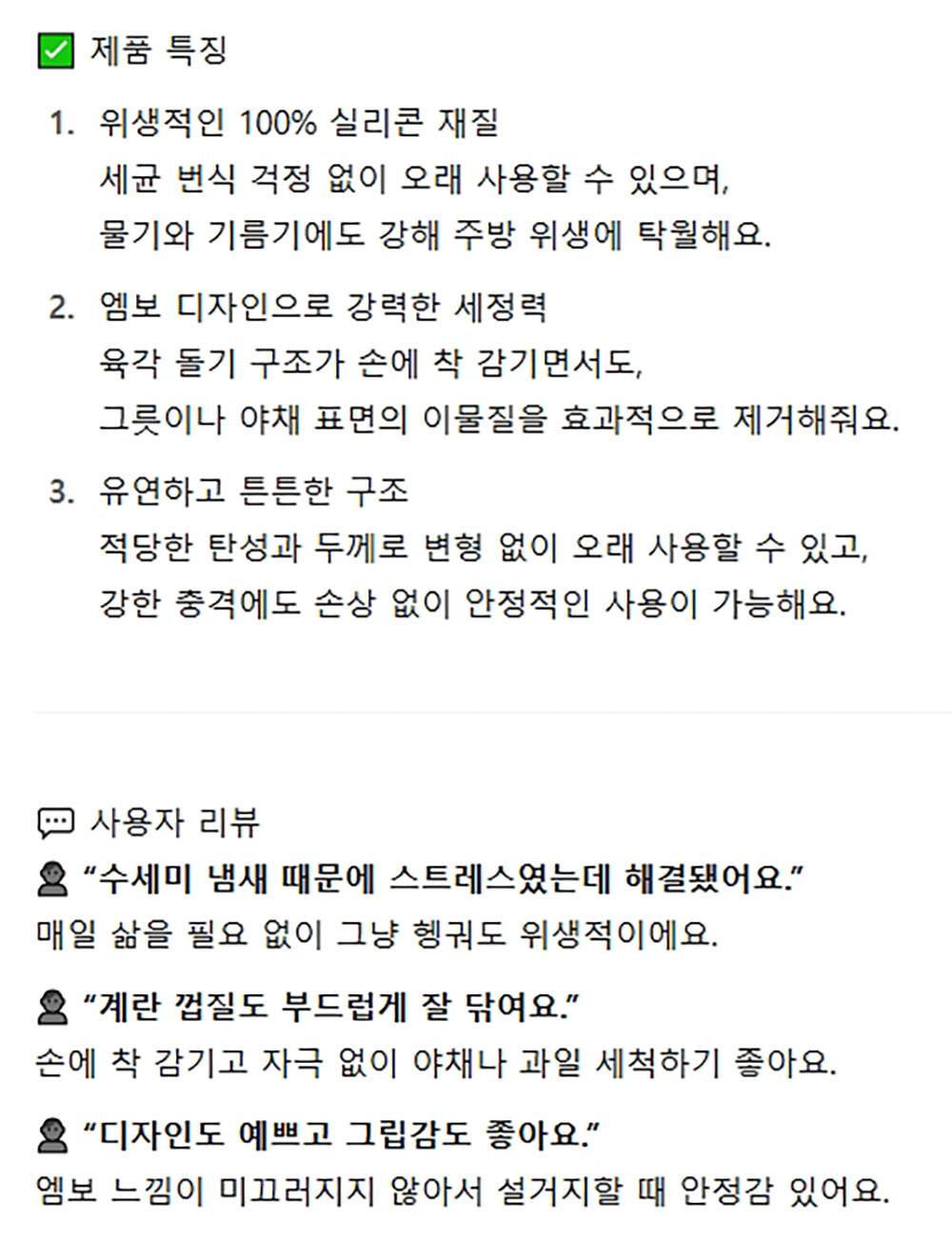 물기 기름기에도 강해 위생에 탁월해요 실리콘 수세미