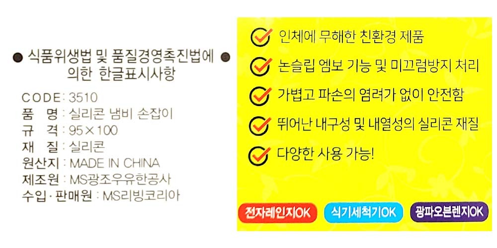 논슬립 엠보기능 미끄럼방지 실리콘 냄비 손잡이 2입