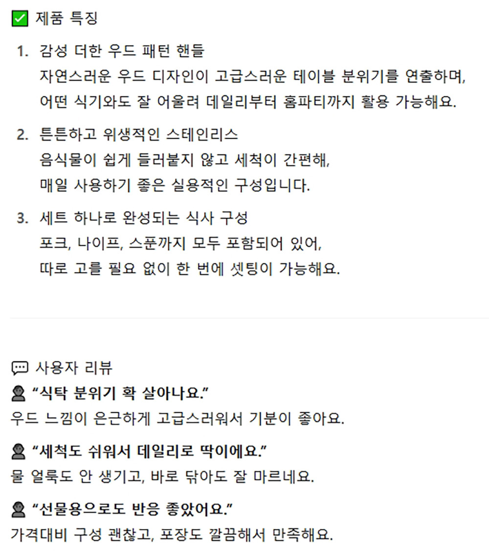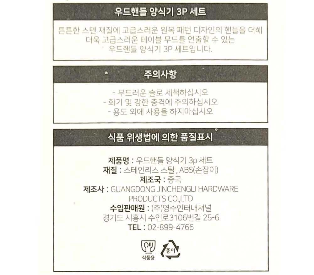 감성 더한 우드패턴 포크 나이프 스푼 양식기 3P 세트