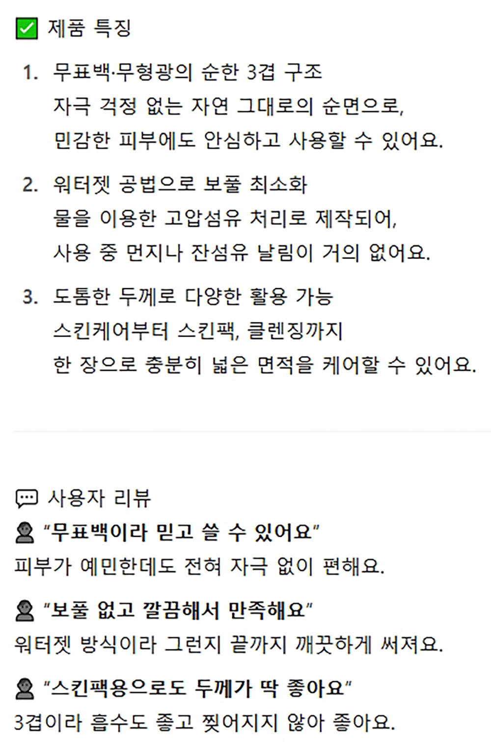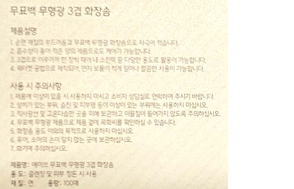 도톰한 두께 부드럽고 순한 무표백 3겹 화장솜 100매