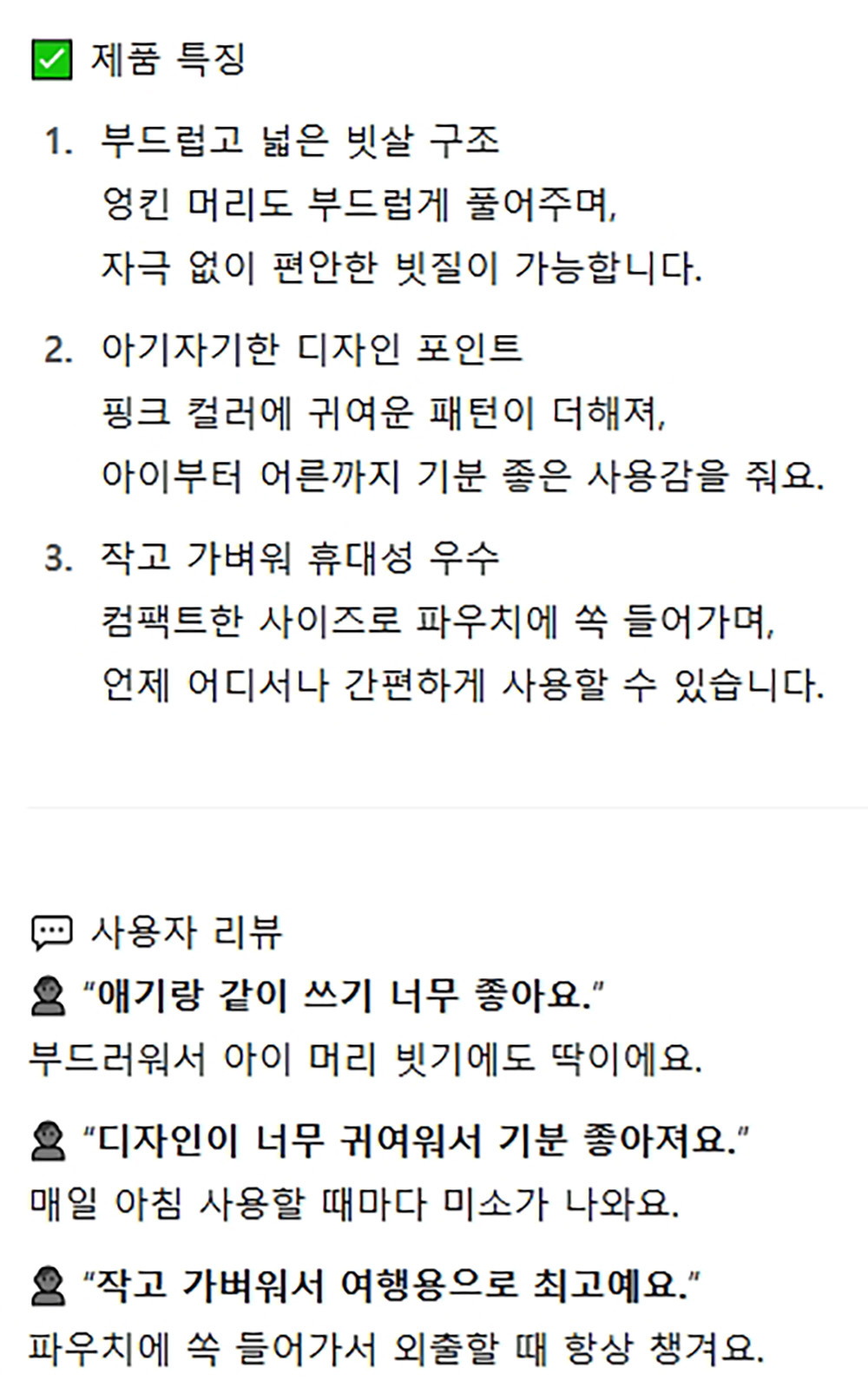 부드러운 넓은 빗살 구조 편안한 빗질 심플빗 소 1입
