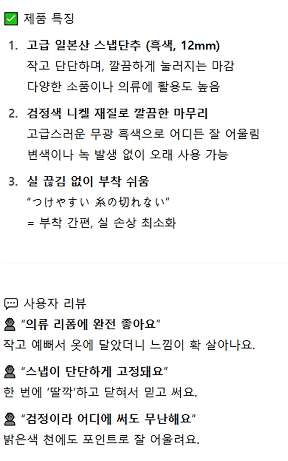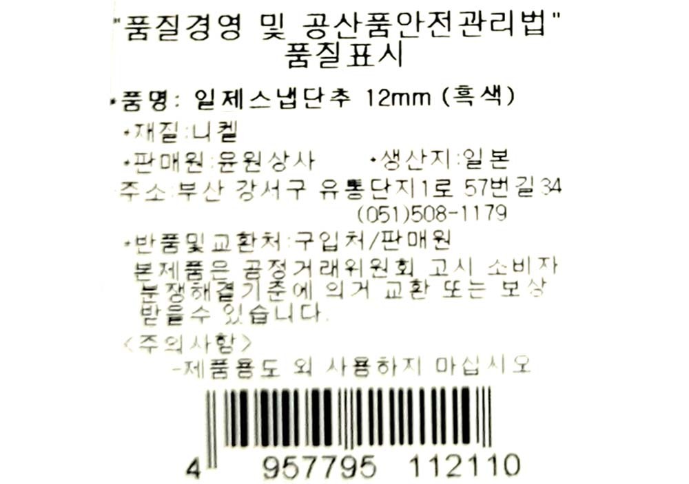 공예 수예 의류 DIY 고급 일본산 단추 12mm 흑색 5봉