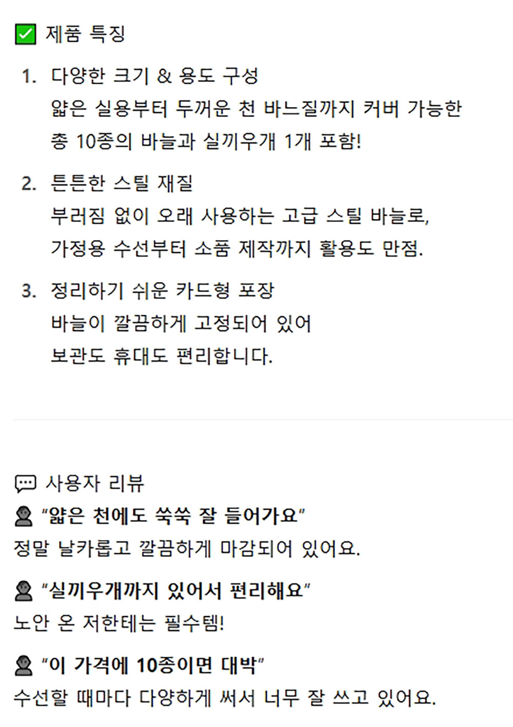 다양한 크기 10종 바늘 실끼우개 바늘세트 10P 5봉