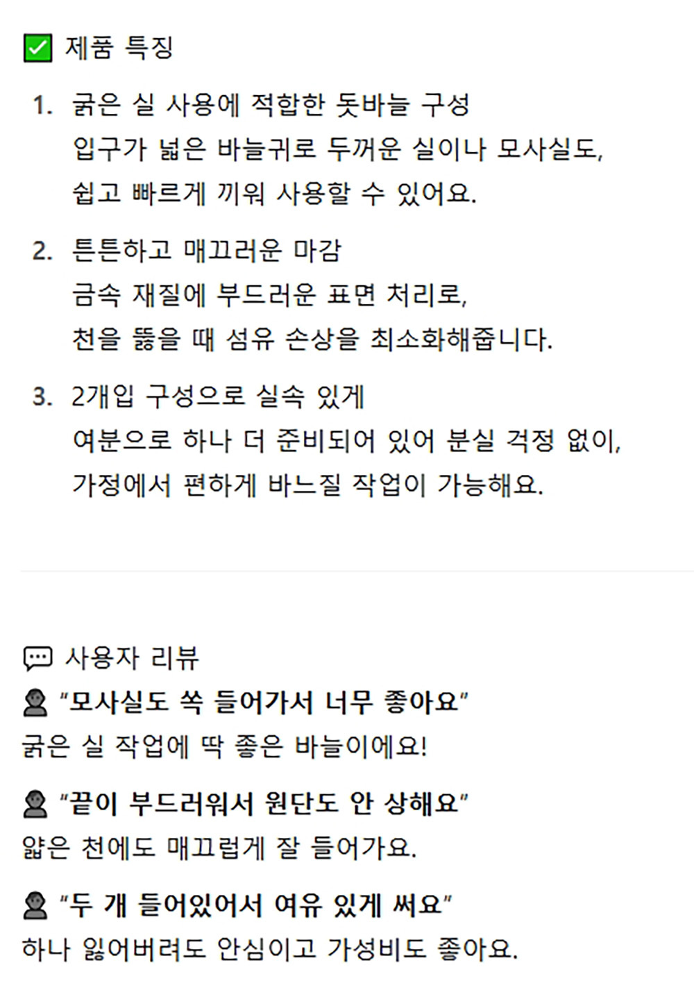 굵은 실 사용에 적합한 수선 돗바늘 모사대침 2P 5봉
